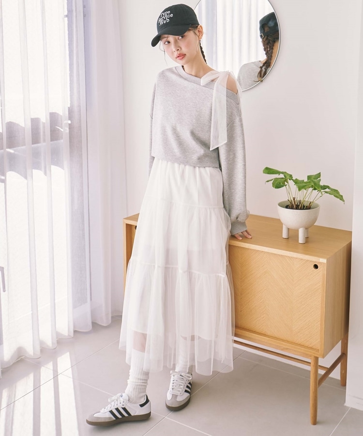たっぷりとボリュームのある裾はスタイリングのワンポイントに。
