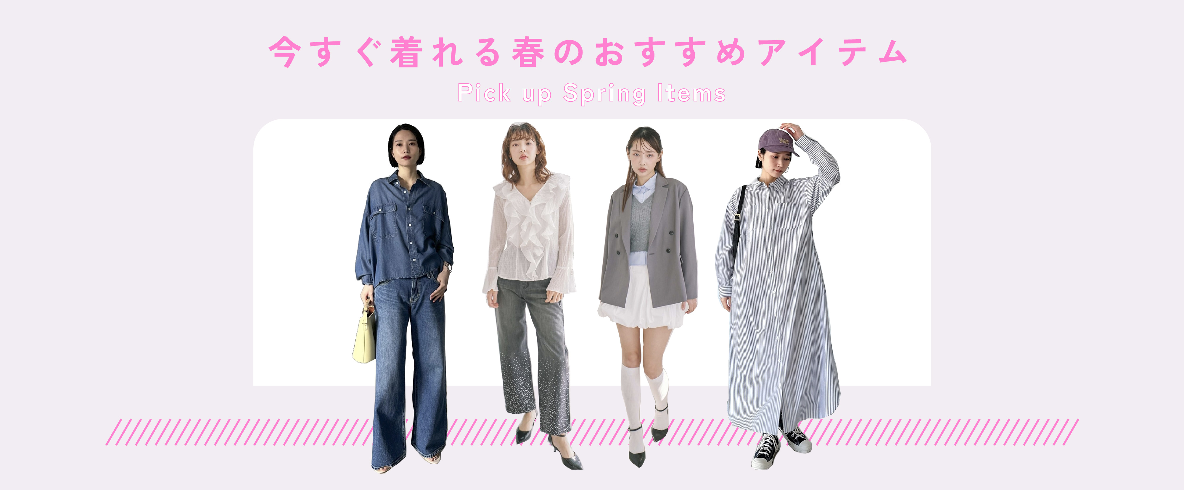 \ 今すぐ着れる春のおすすめアイテム特集 / 春の新作の中からPMboxおすすめアイテムを厳選。 ぜひチェックしてみてください♪ デニム VIEW MORE ブラウス VIEW MORE ジャケット VIEW MORE ワンピース VIEW MORE