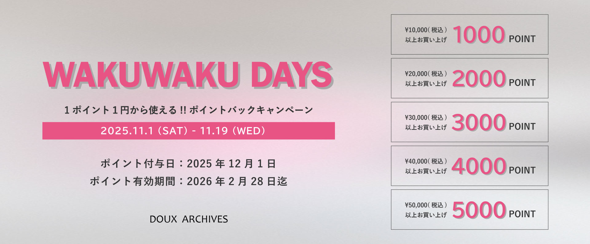 【WAKUWAKU DAYS】ポイントバックキャンペーン開催!