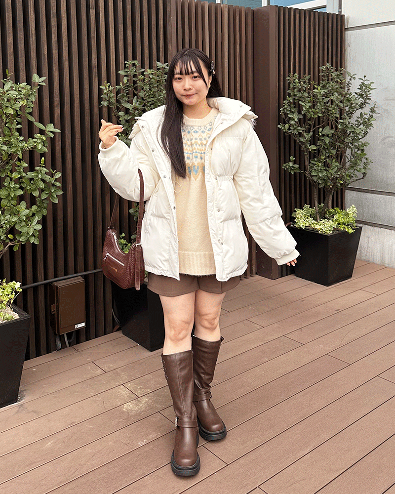 outer¥¥13,970 / Knit¥ 5,940 / pants¥5,940 / boots¥11,000 / bag¥6,930