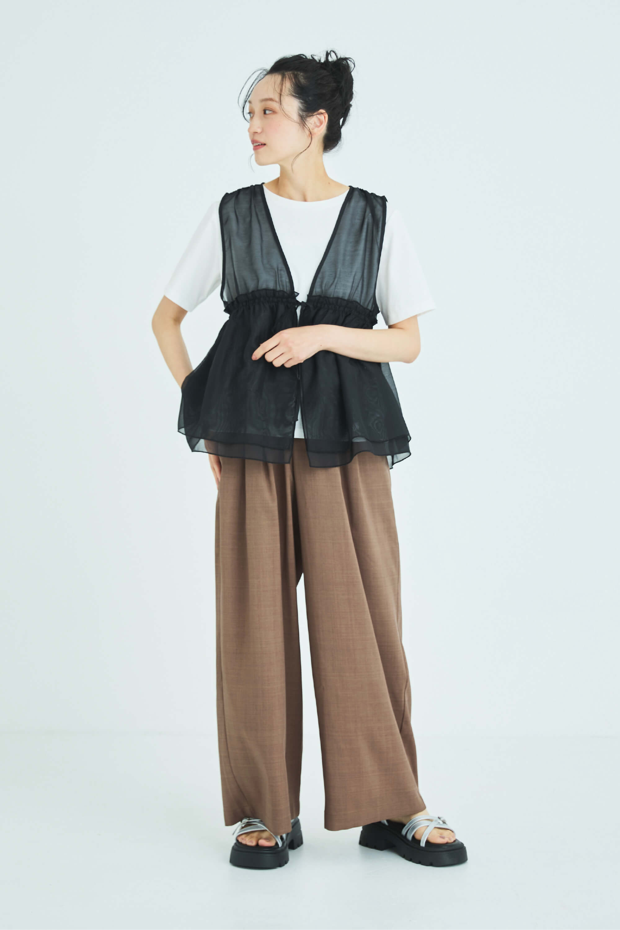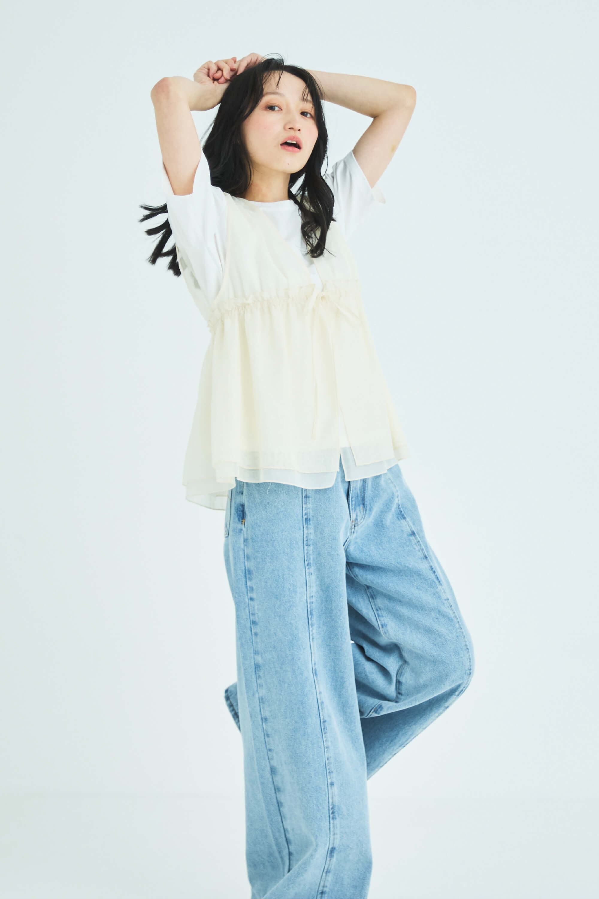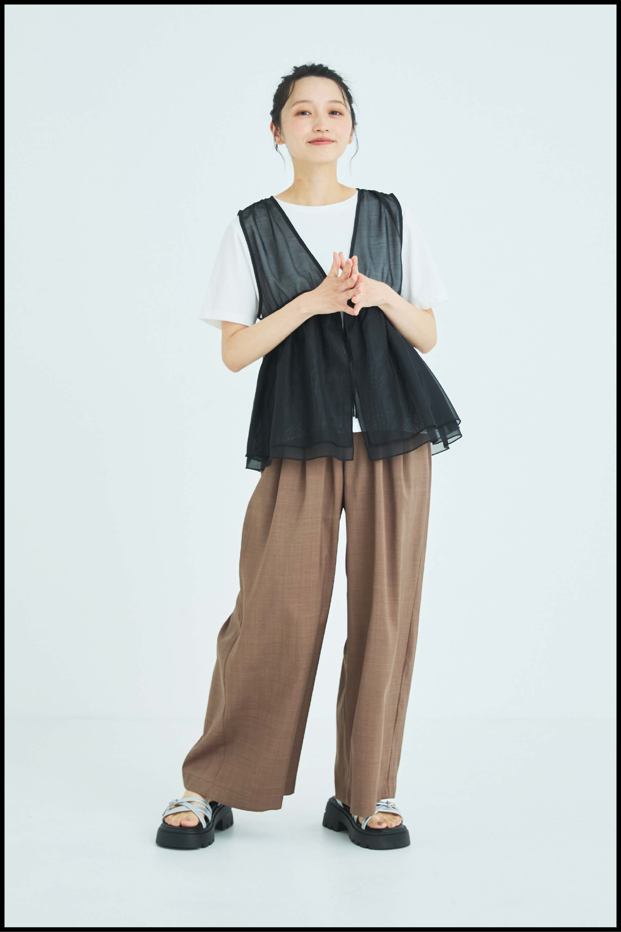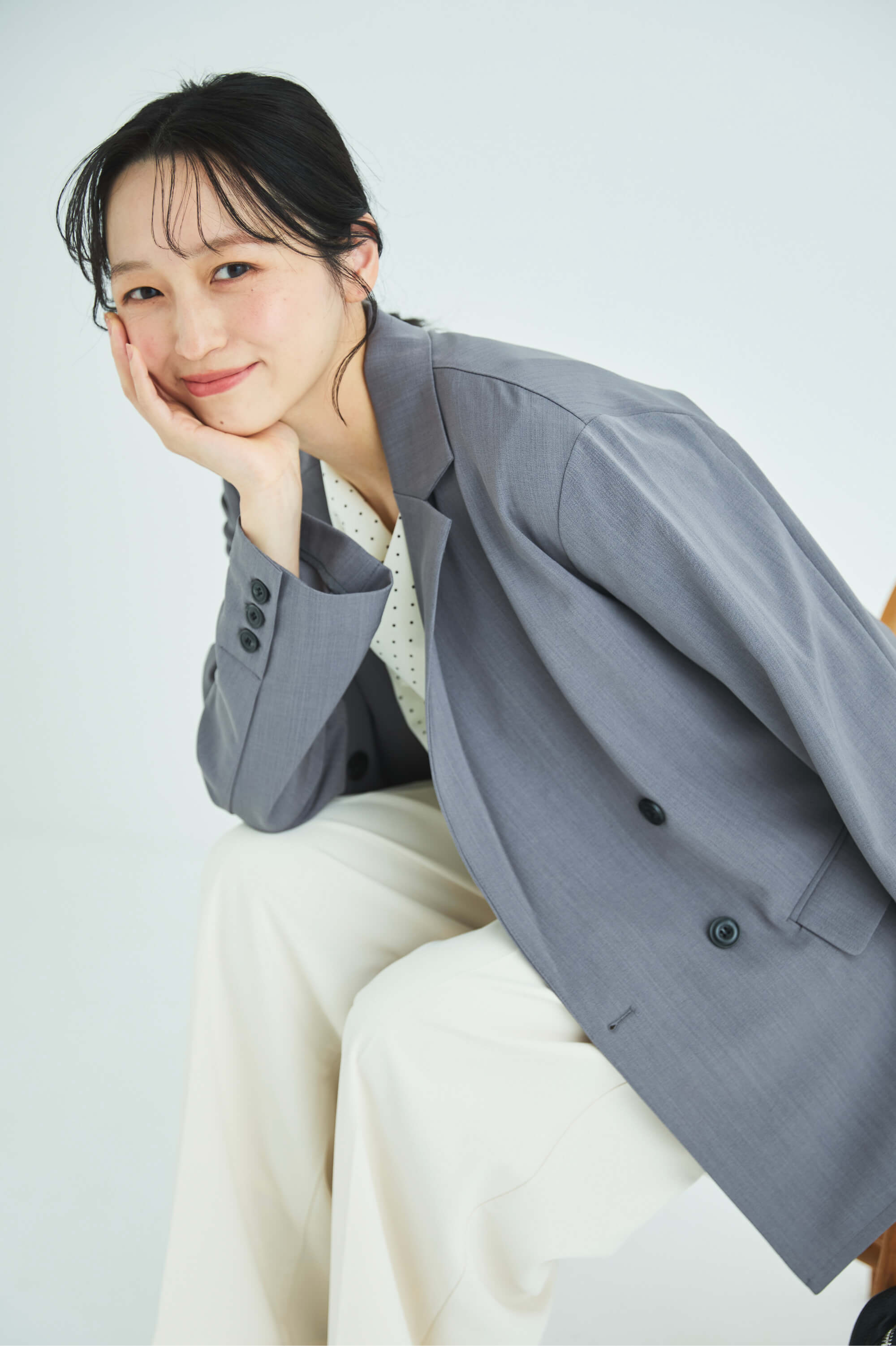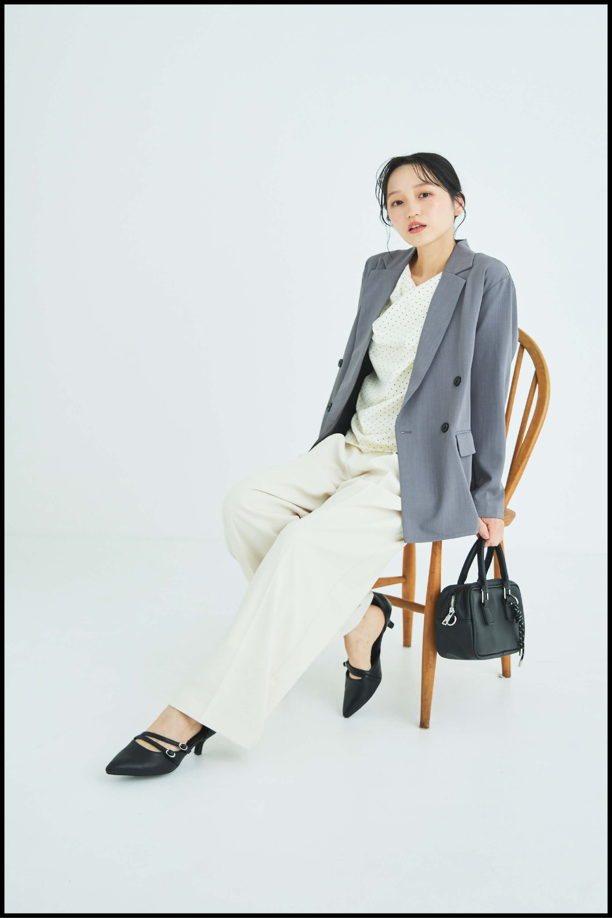 端正なジャケットに表情豊かなトップスを忍ばせて、