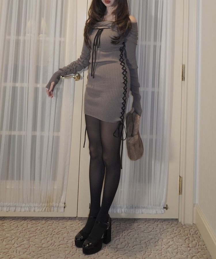 サイド部分のレースアップがスタイルアップしてくれるデザイン