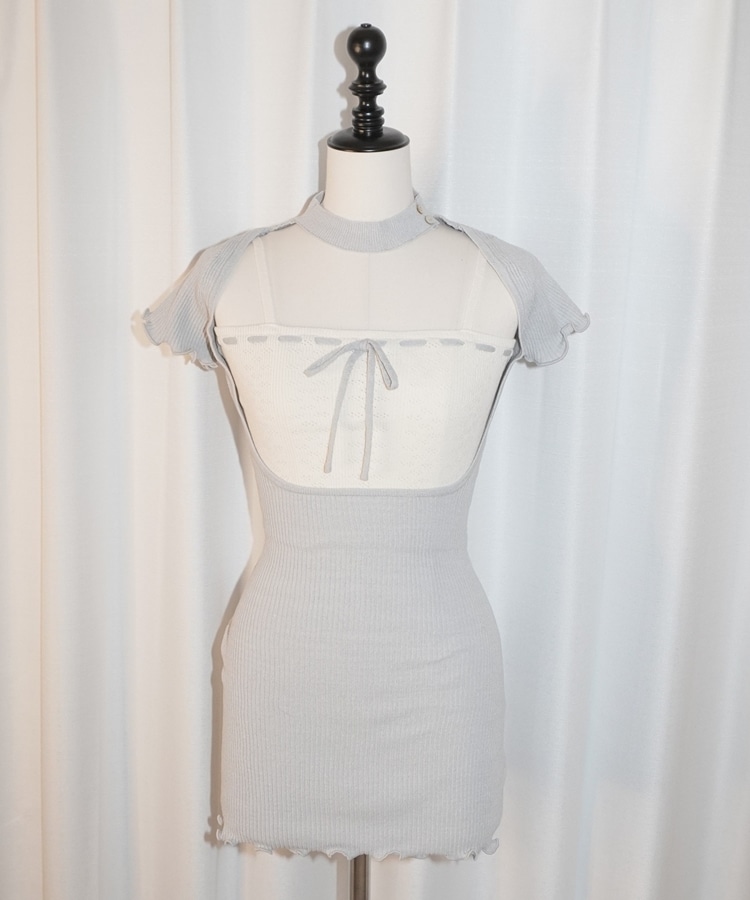eyelet ribbon mini onepiece GRAY