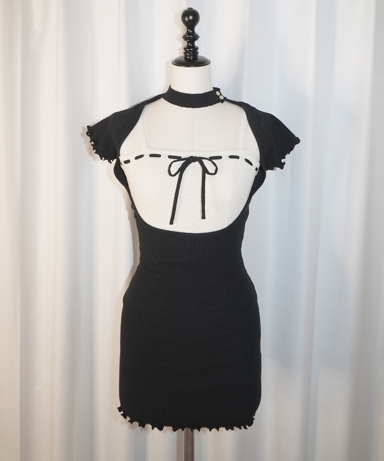 eyelet ribbon mini onepiece BLACK