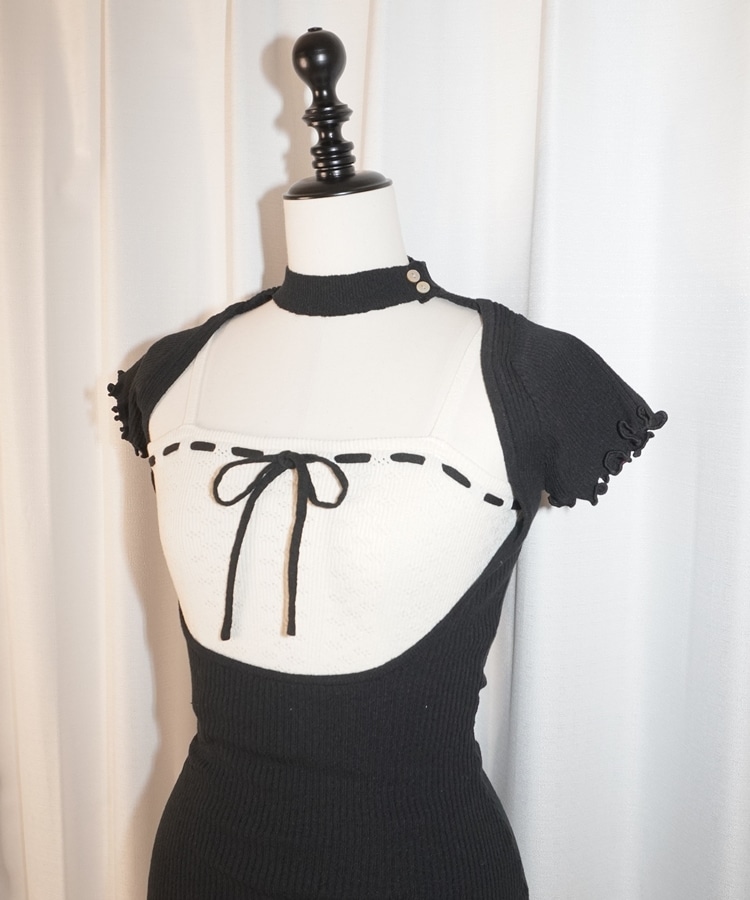 eyelet ribbon mini onepiece BLACK/IVORY