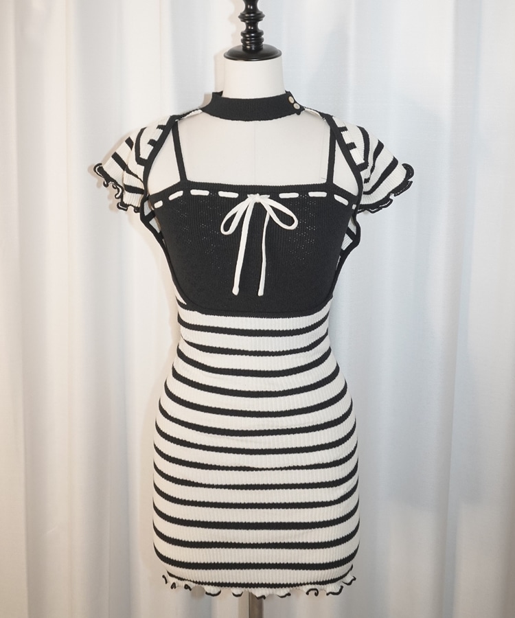:GRAY/BLACK/IVORY:キャミソール アクリル 33%/綿 30%/ポリエステル 20%/ナイロン 17% ワンピース 品質表示参照 0%<br>BLACK:キャミソール アクリル 33%/綿 30%/ポリエステル 20%/ナイロン 17 ワンピース 品質表示参照 0%
