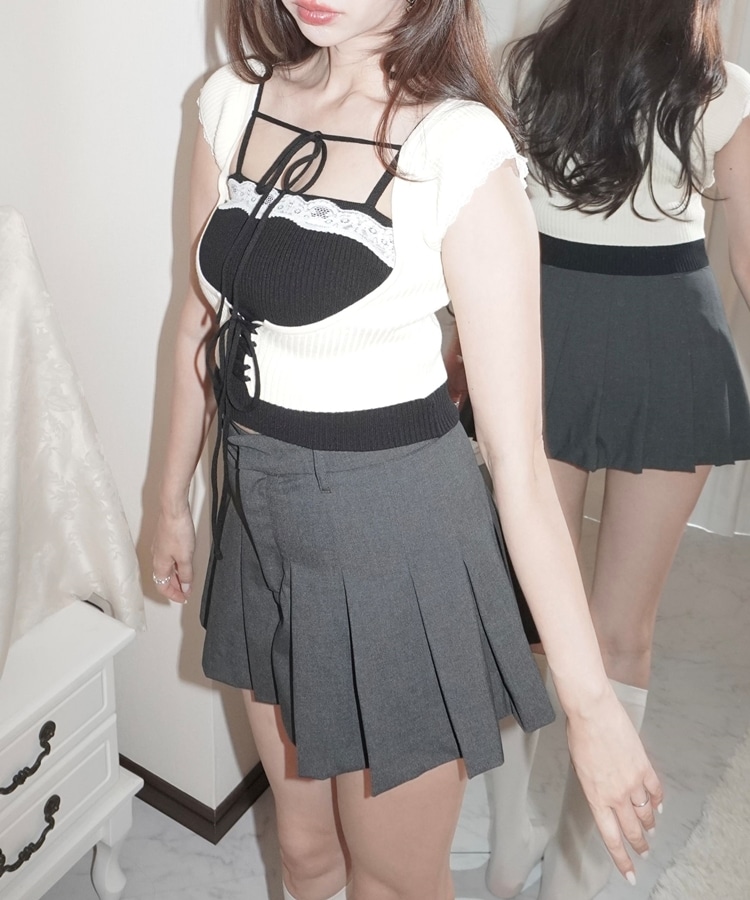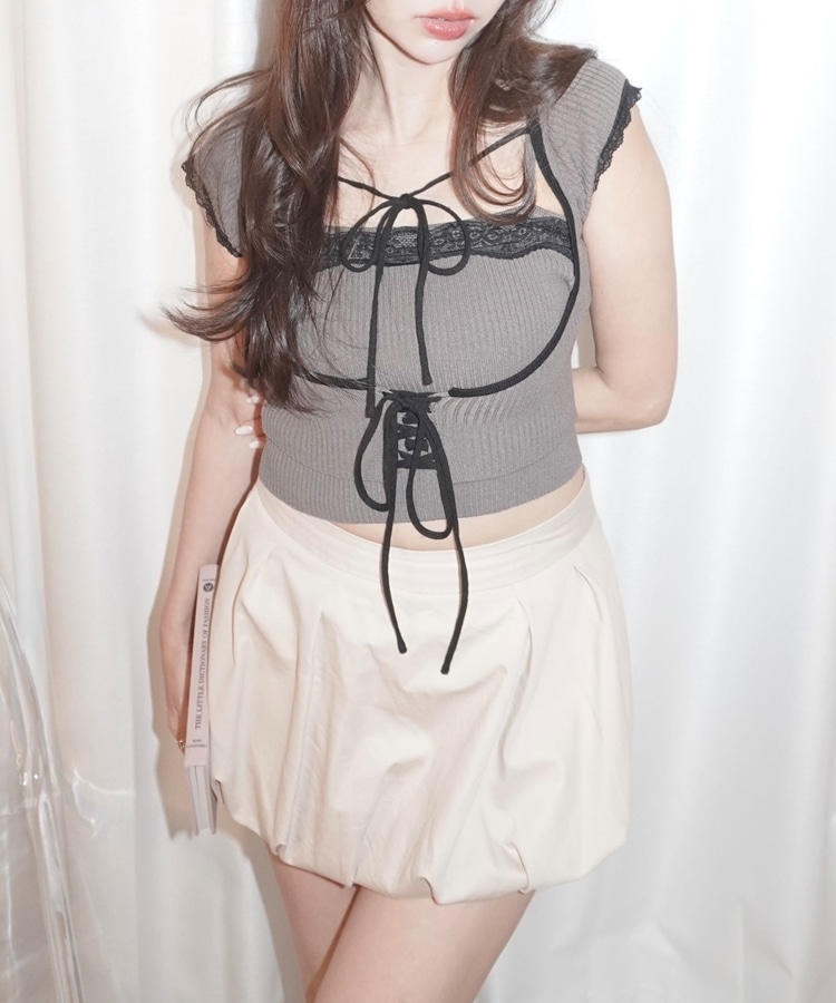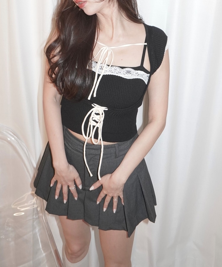 laceup feminine tops×lace cami set CHARCOAL GRAY