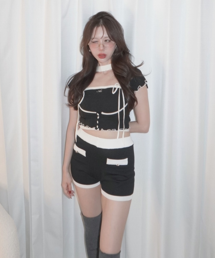 bicolor eyelet ribbon tops BLACK