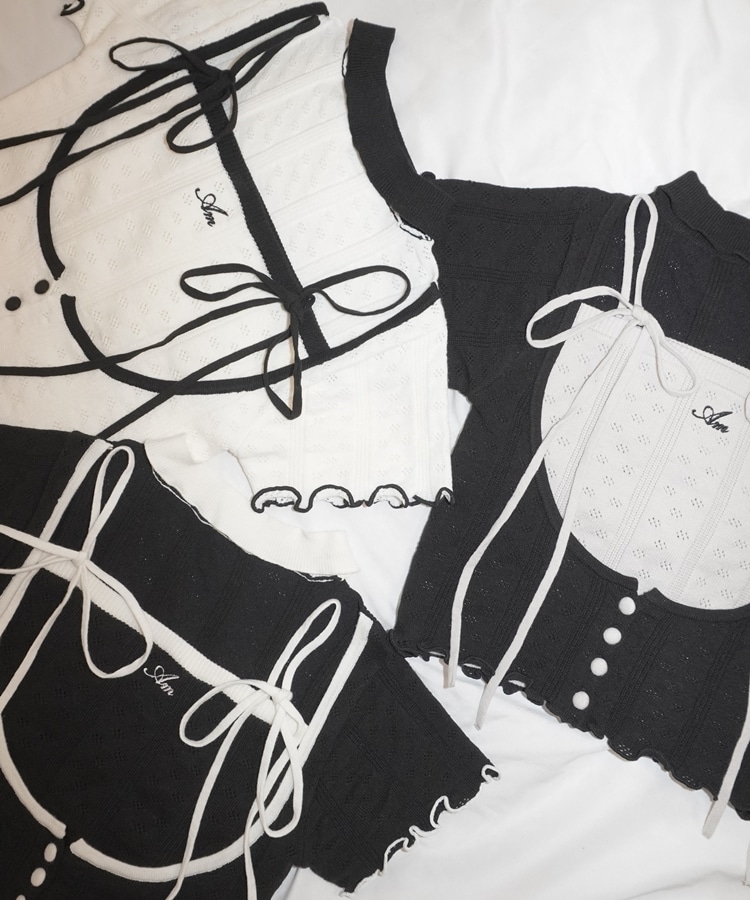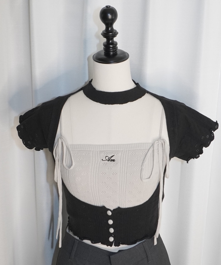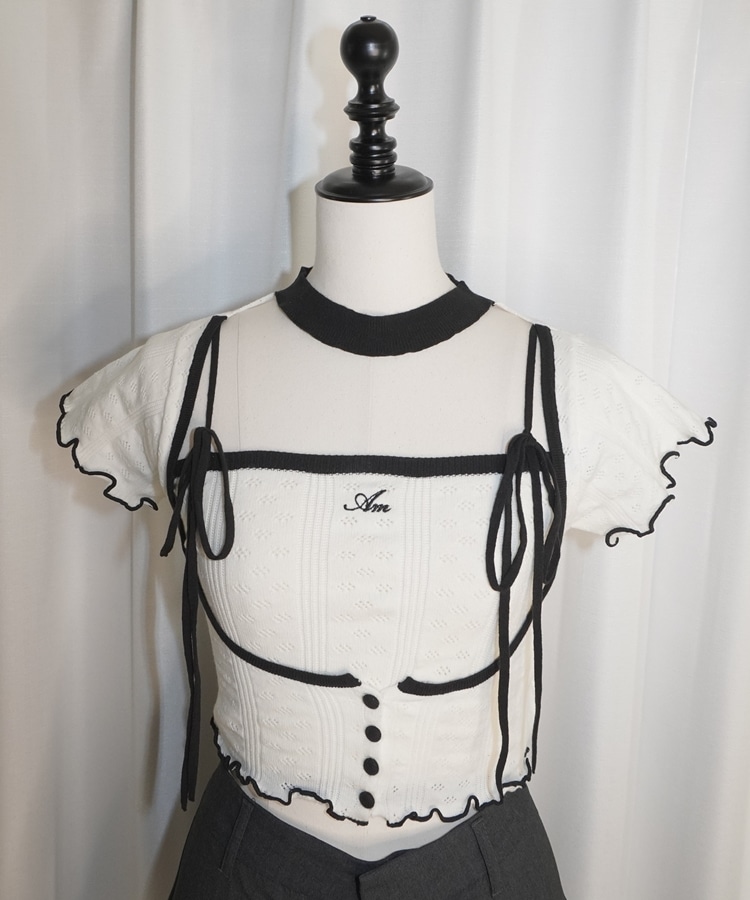 配色のアイレットデザインが可愛いキャミソールとトップスのセットアイテム