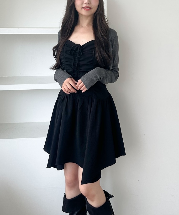 ドロストイレヘムミニキャミワンピース BLACK