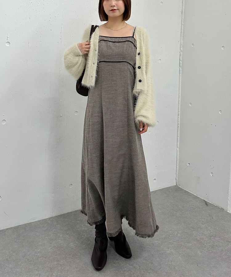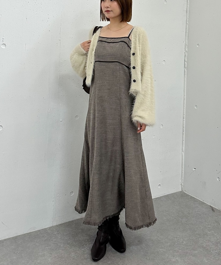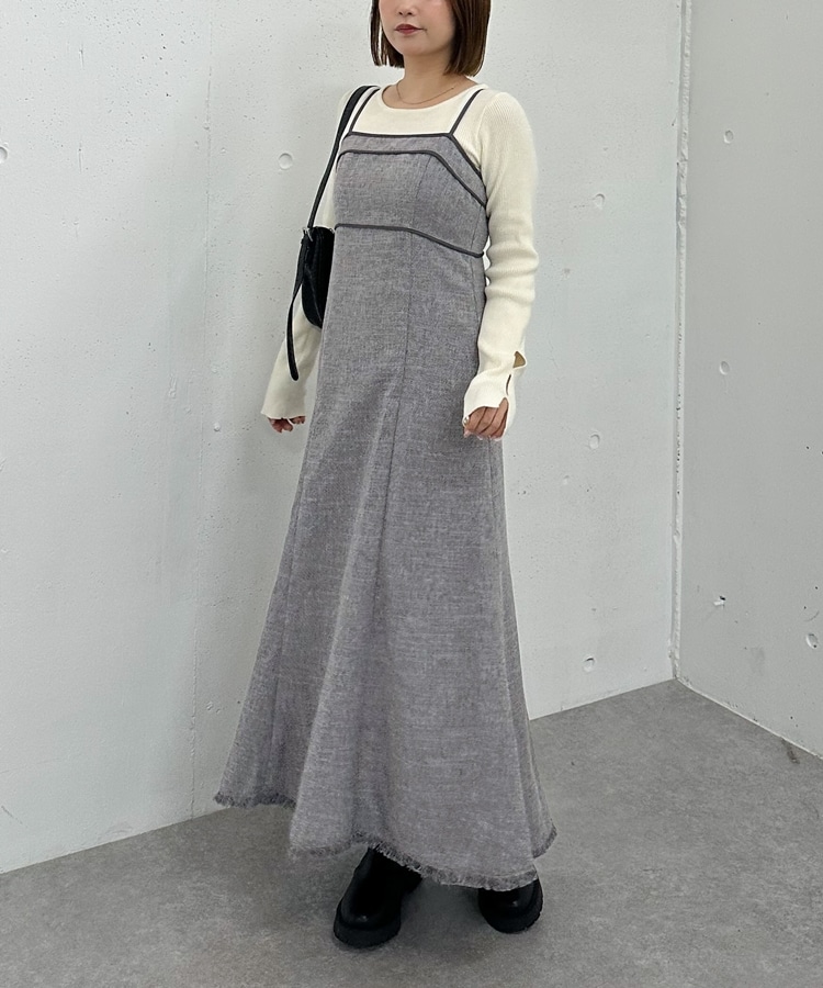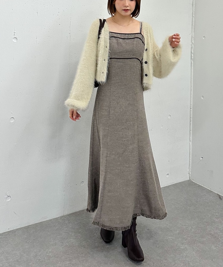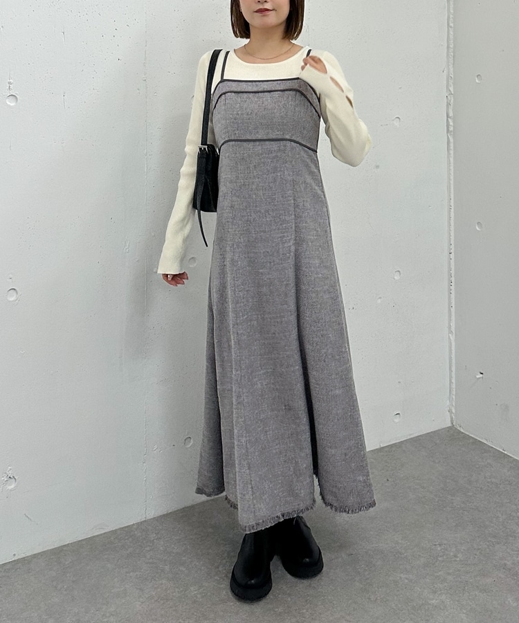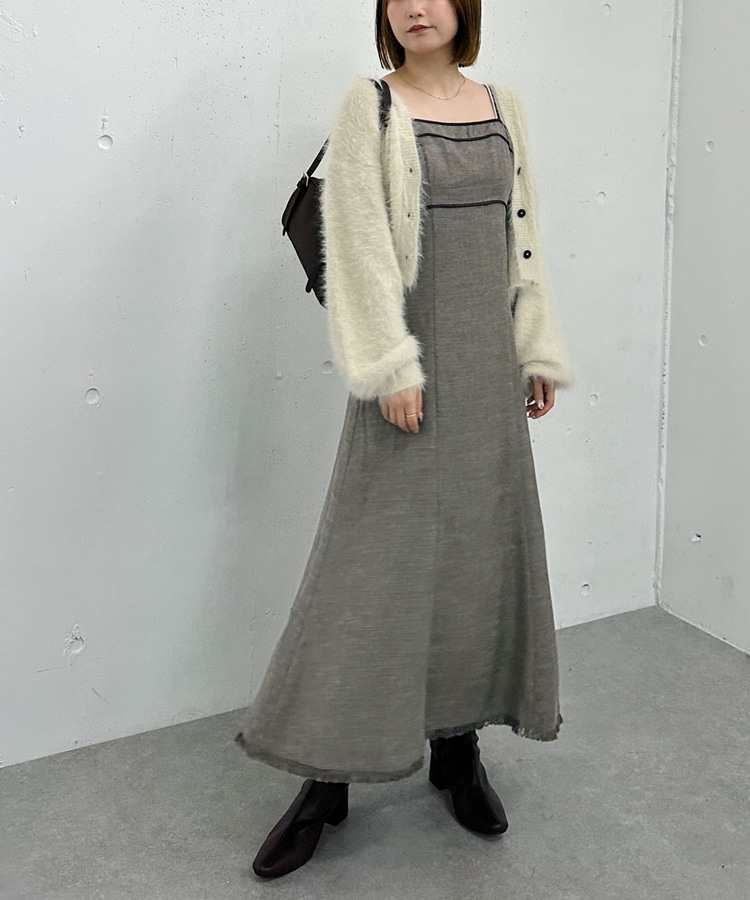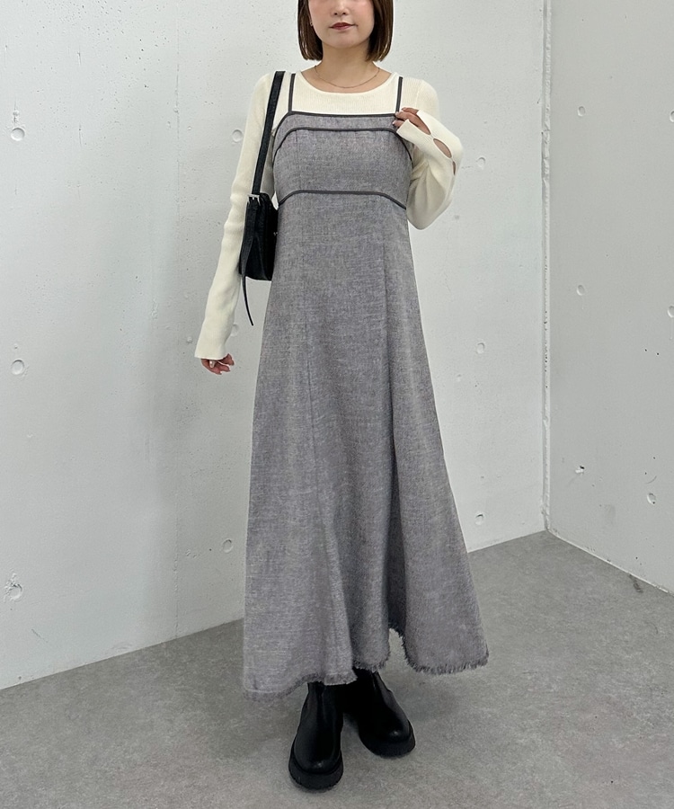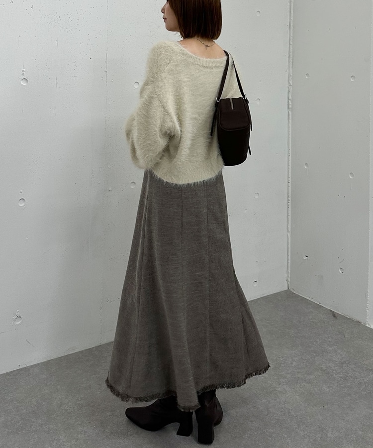 シンプルにニットインで楽しんだり、ゆるめのカーデを羽織ったコーデもおすすめ♪
