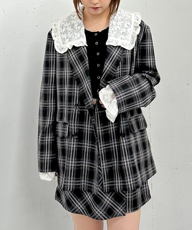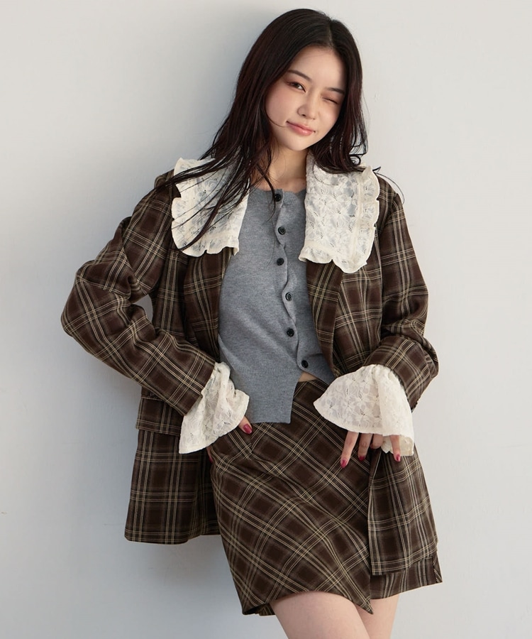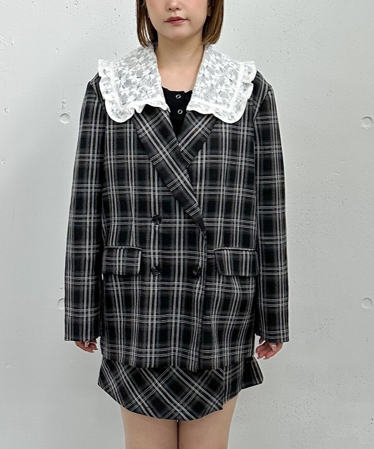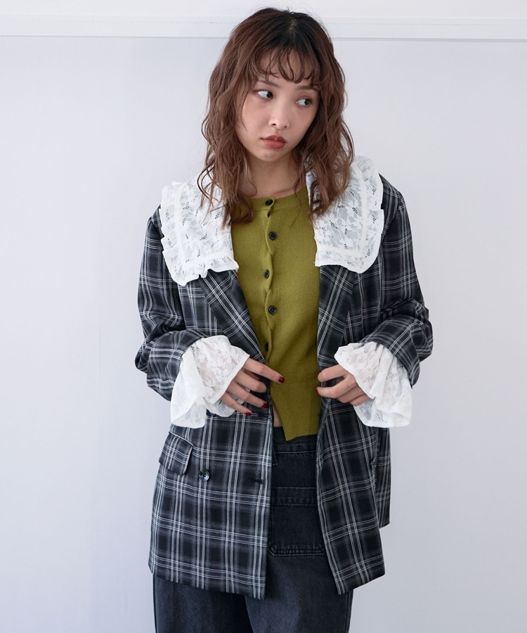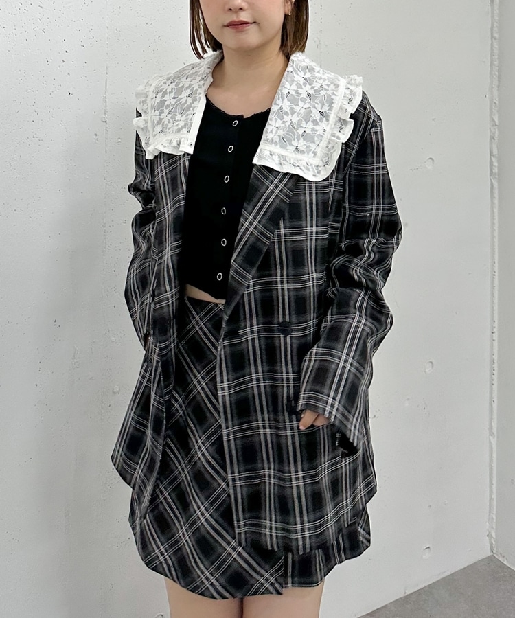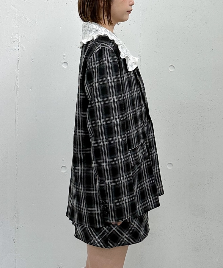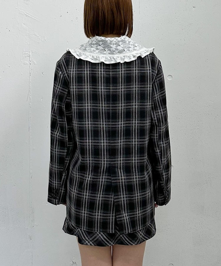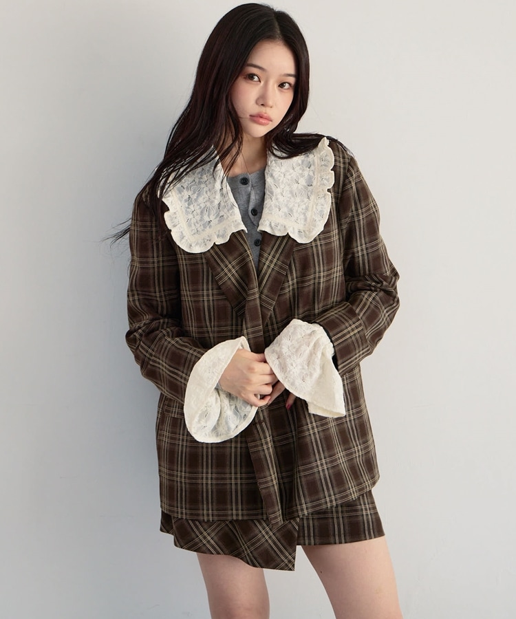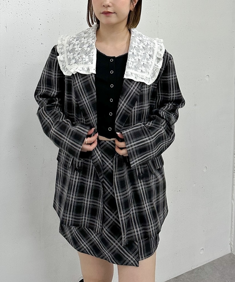 トレンドのチェック柄×大きめのレースカラーが特徴のジャケット。
