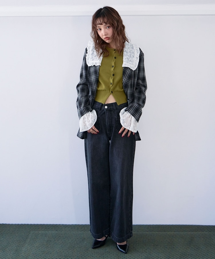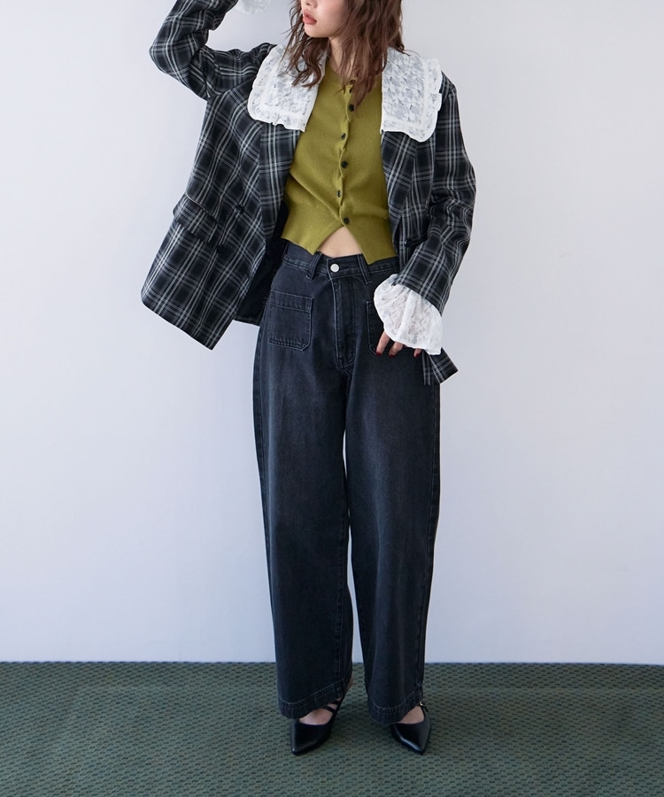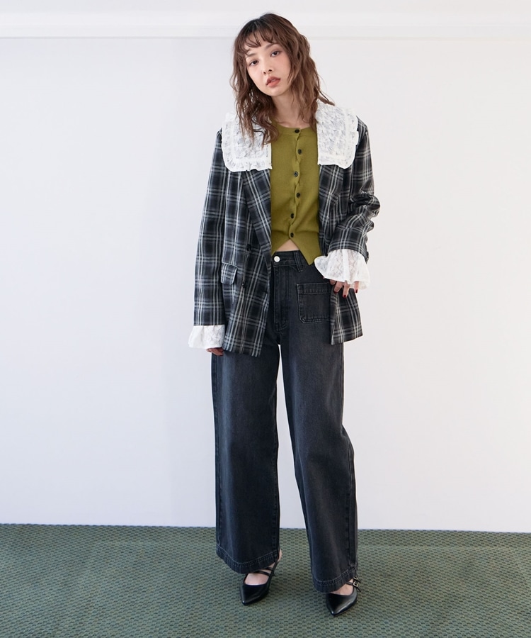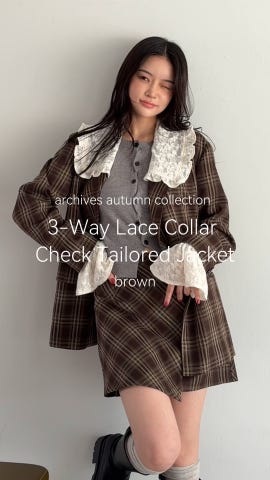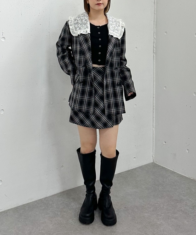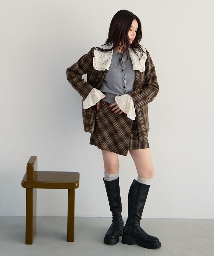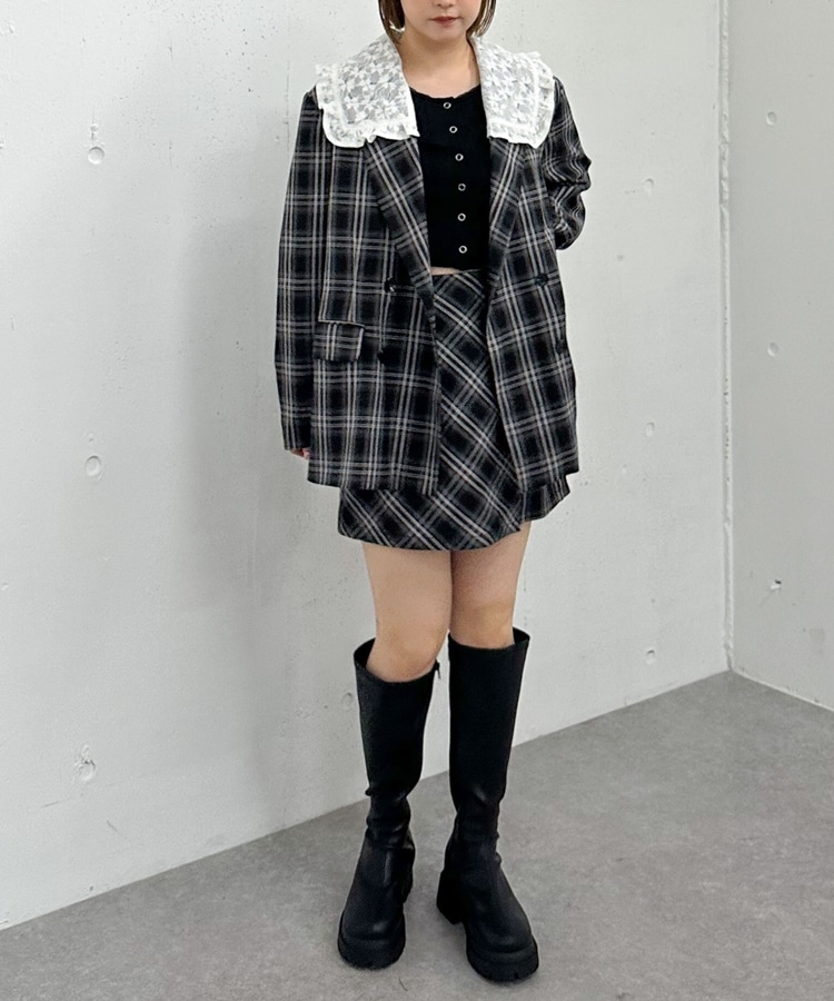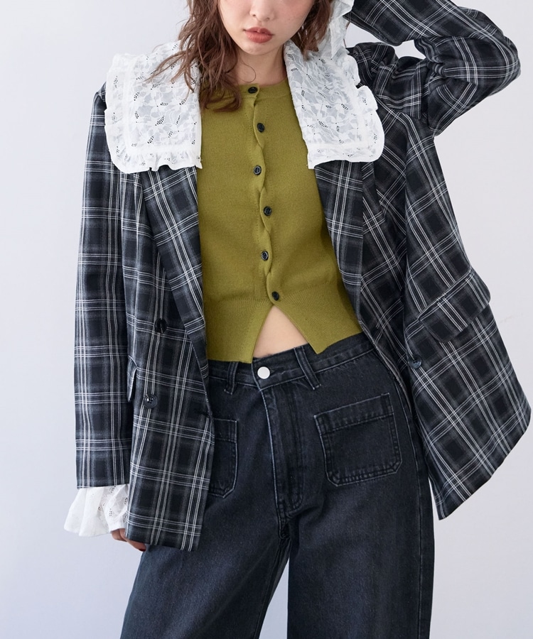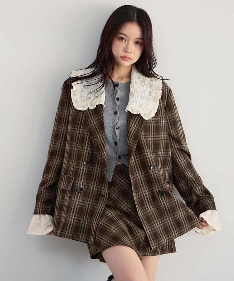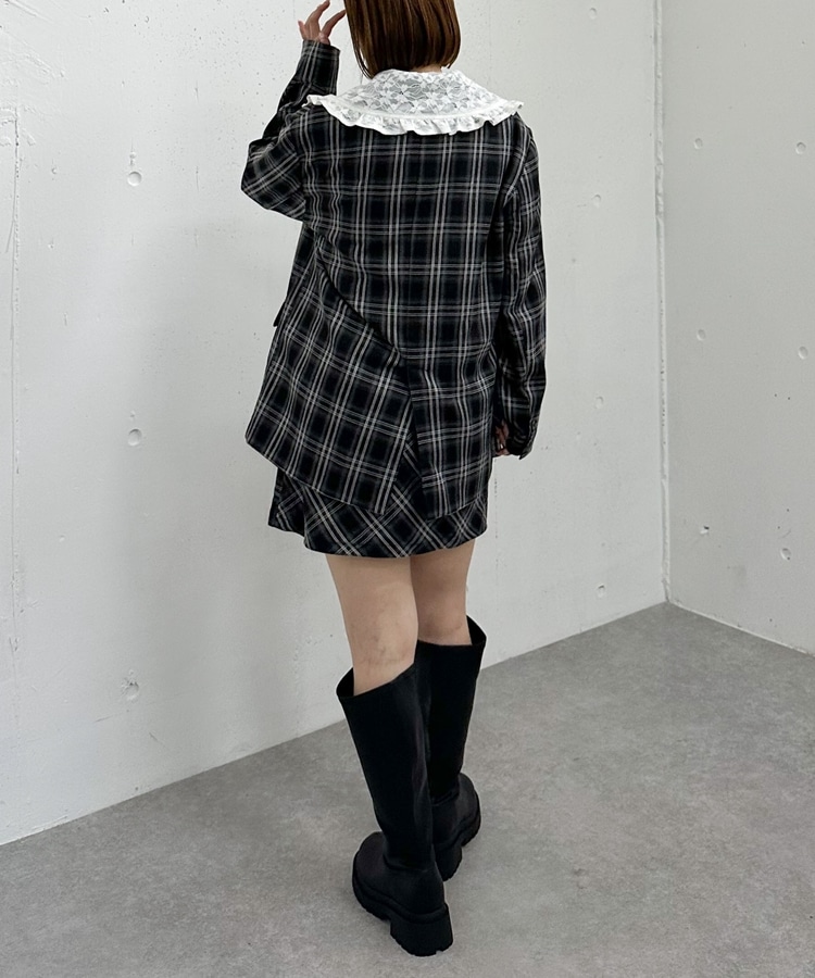 トレンドのチェック柄×大きめのレースカラーが特徴のジャケット。