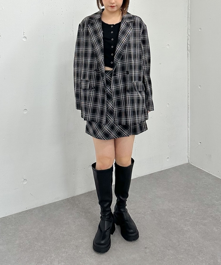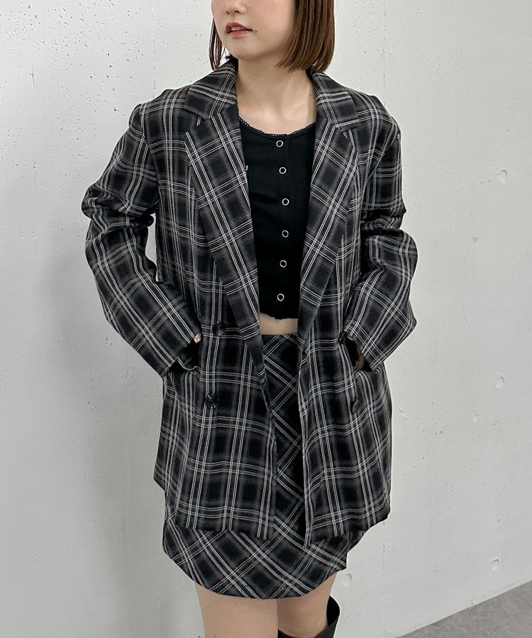 【SETUP対応】3wayレースカラーチェックテーラードジャケット CHARCOAL GRAY