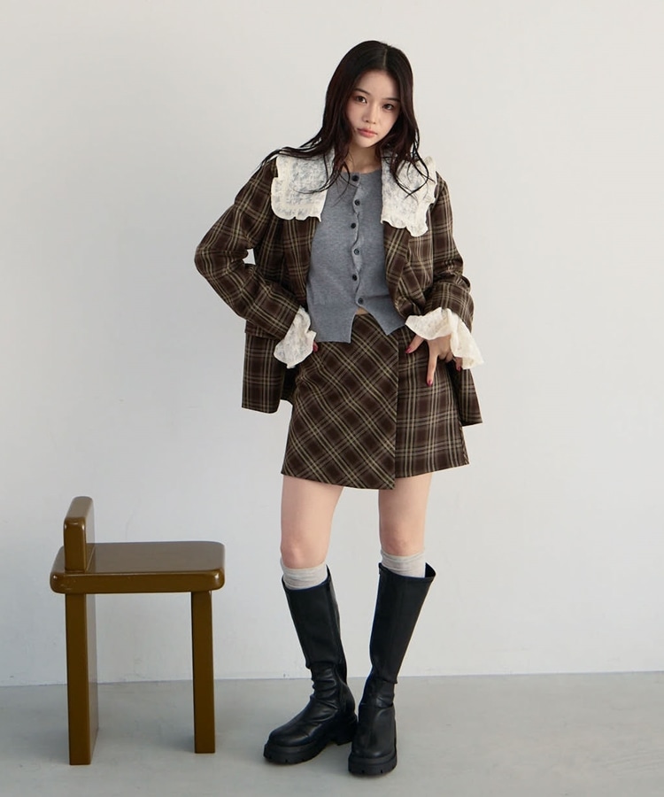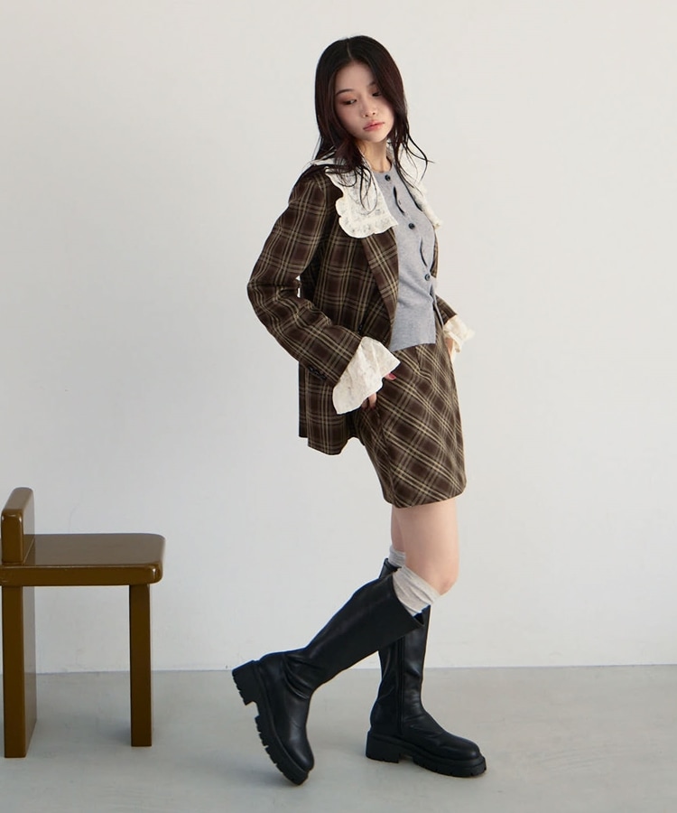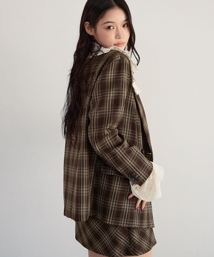 【SETUP対応】3wayレースカラーチェックテーラードジャケット BROWN
