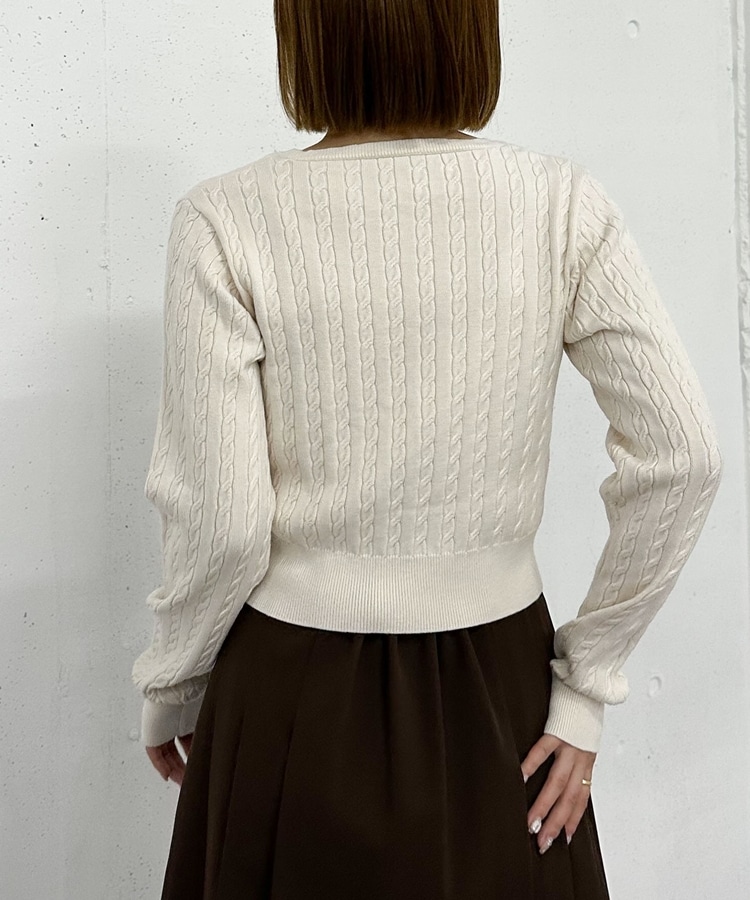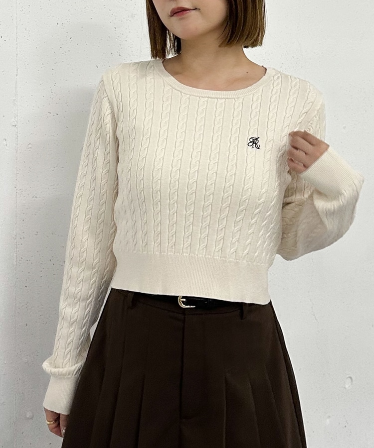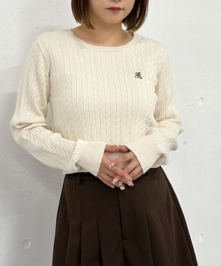 ロゴ刺繍ケーブルニットプルオーバー IVORY