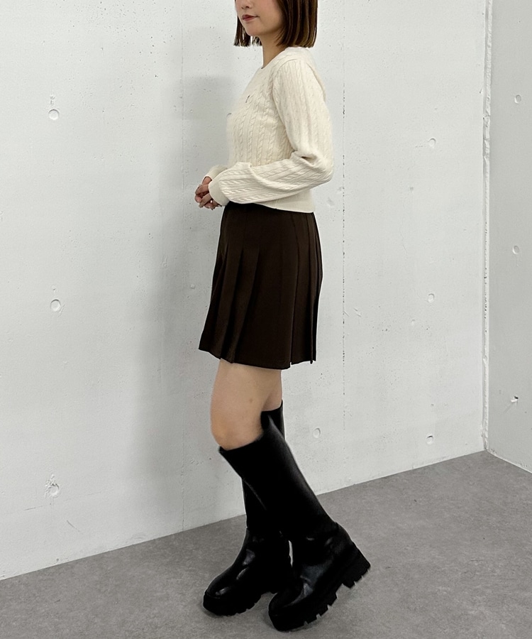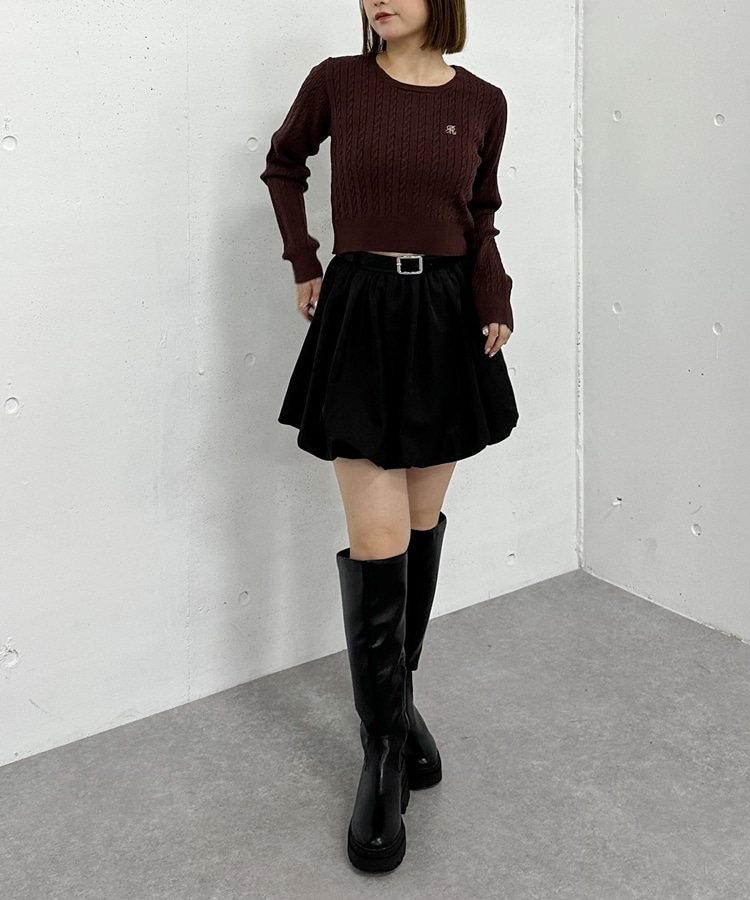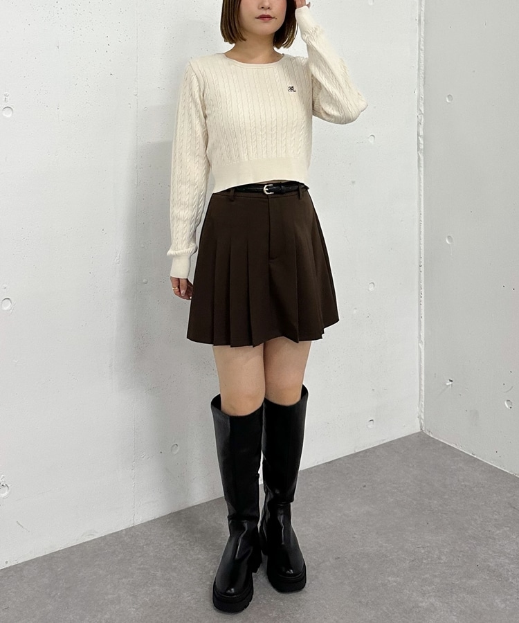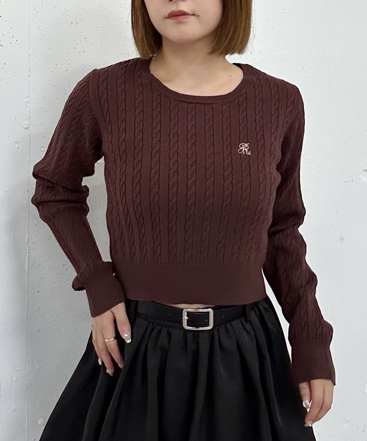 ロゴ刺繍ケーブルニットプルオーバー BROWN