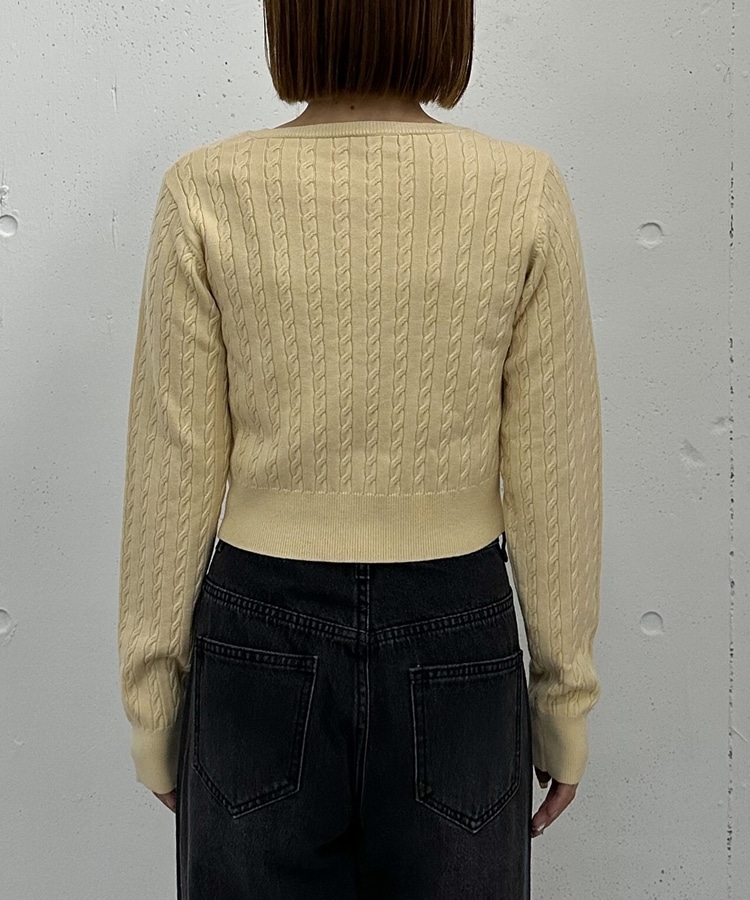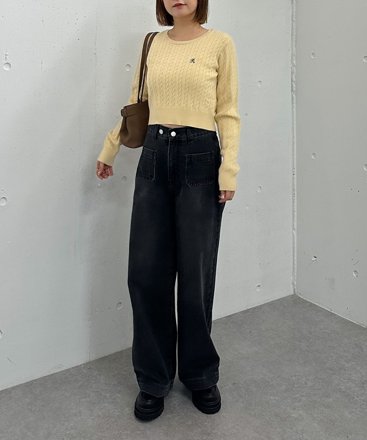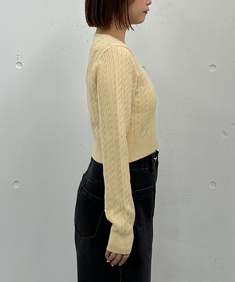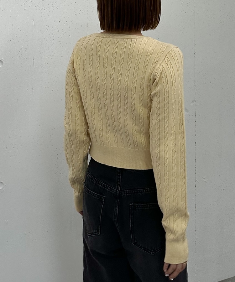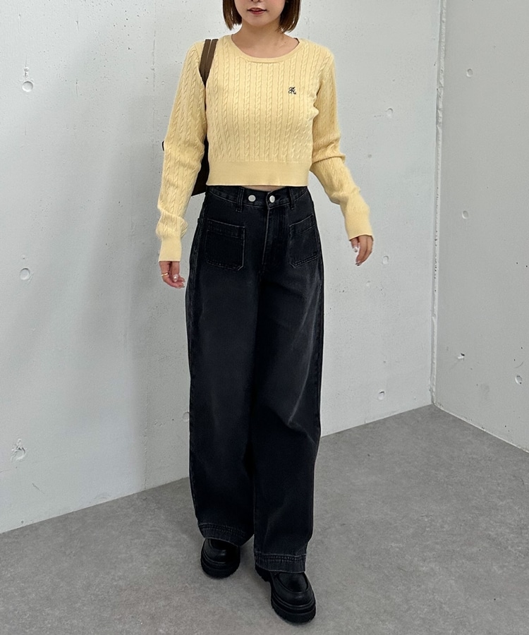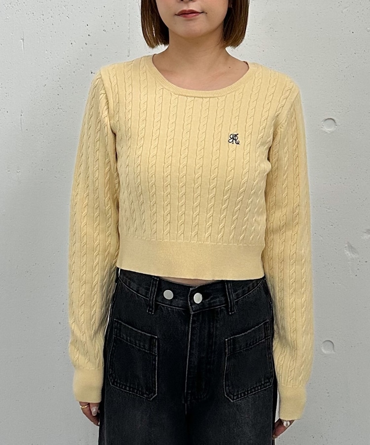 ロゴ刺繍ケーブルニットプルオーバー YELLOW