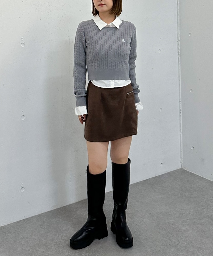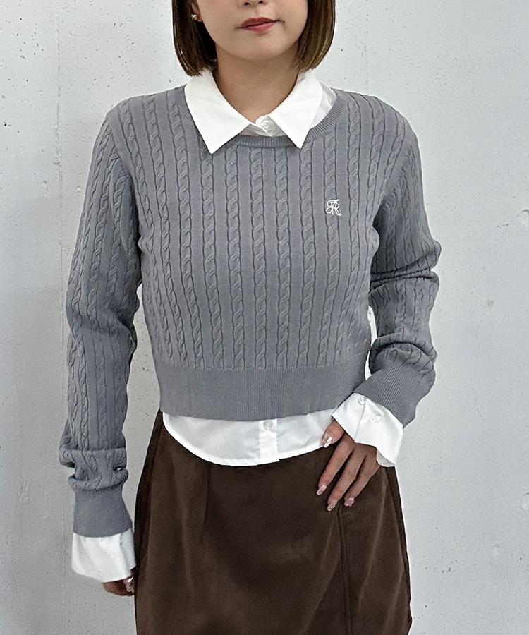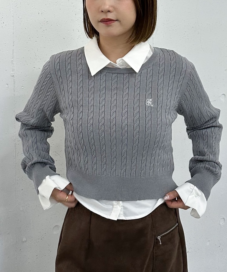 ロゴ刺繍ケーブルニットプルオーバー GRAY