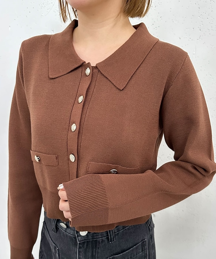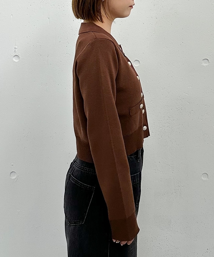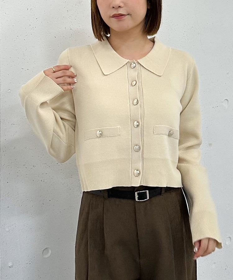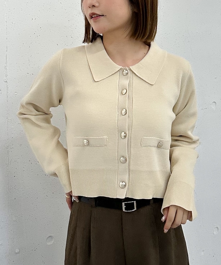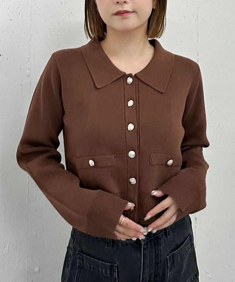■上品カジュアルが叶う♪■さらっと羽織るだけでこなれ感が出るポロニットカーディガン。ハリのあるミラノリブ素材で、きちんと感もありながら着心地は抜群◎ゴールドボタンがさりげないアクセントに。すっきりした着丈でハイウエストボトムとも相性抜群です◎デニムと合わせてカジュアルに、スカートやスラックスと合わせてキレイめにも着まわせます。ーーーーーーーーーーーーーーー透け感:なし裏地:なし伸縮性:あり光沢感:なし生地厚さ:普通洗濯方法:手洗い可※詳しいお手入れ方法は商品についているタグをご覧くださいーーーーーーーーーーーーーーー※ご利用のモニター環境により、実際の色味と多少異なる場合がございます。