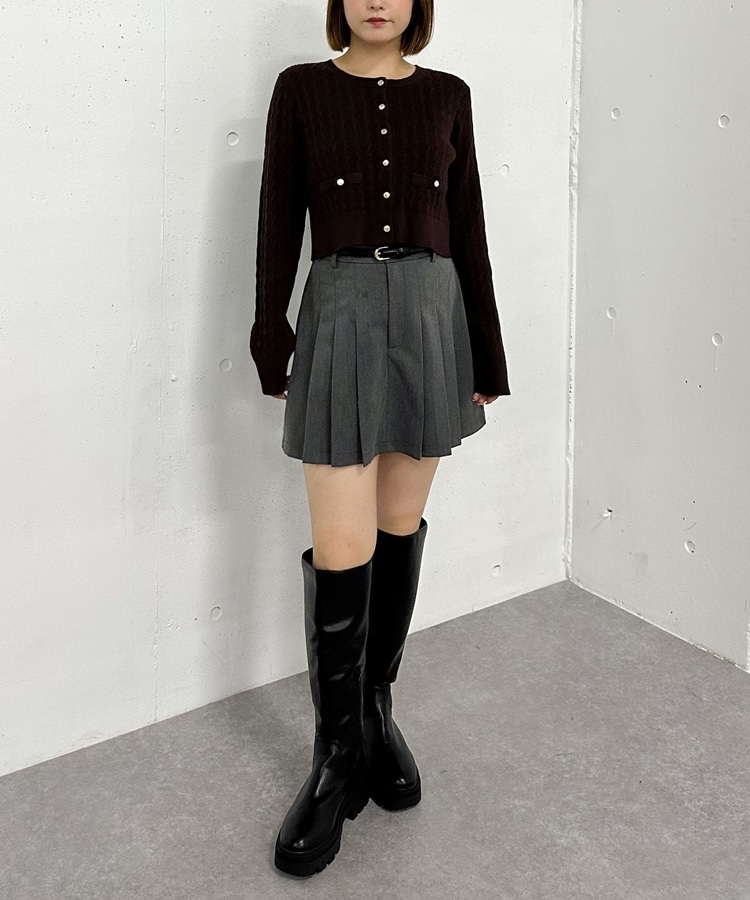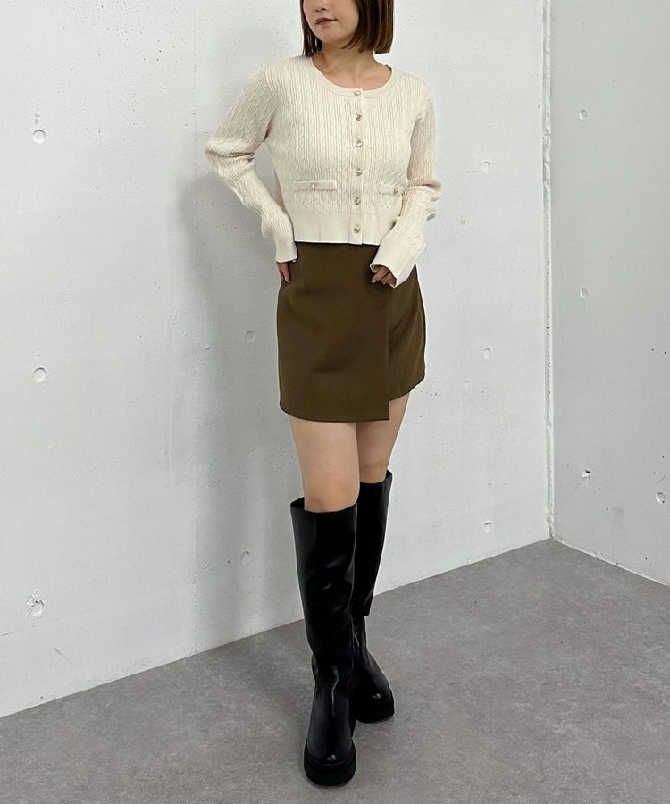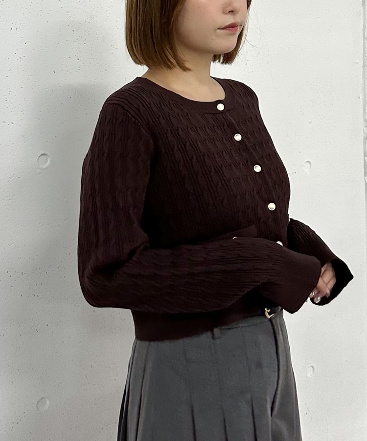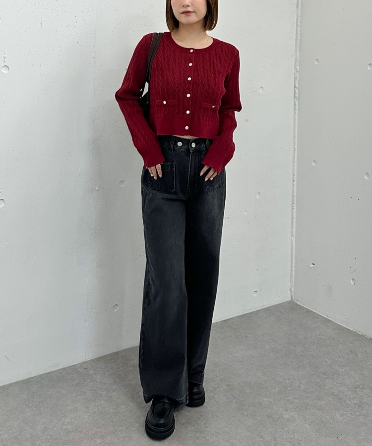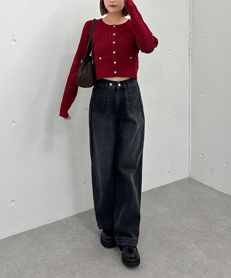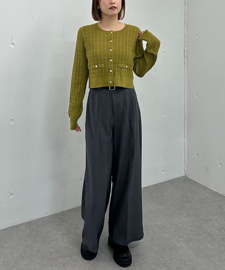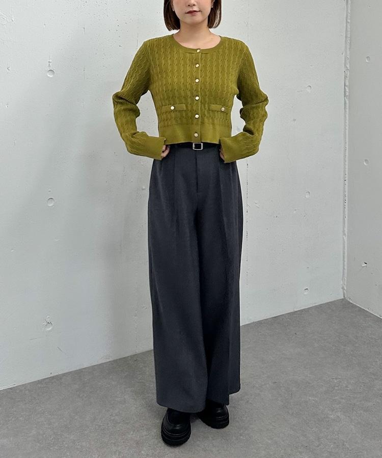 首元のクルーネックは詰まりすぎず、どんな骨格の方でも着こなせます。