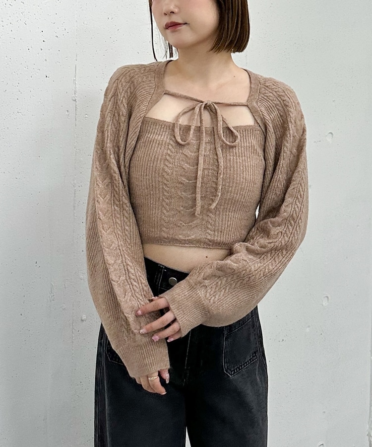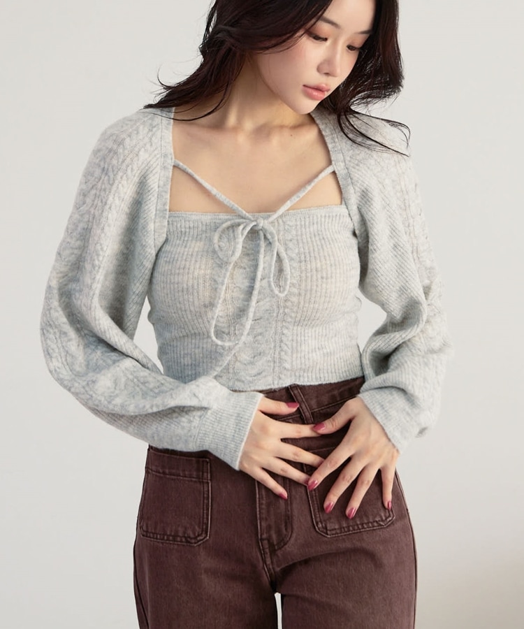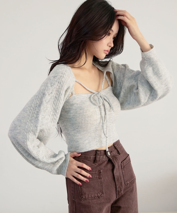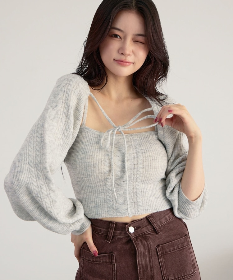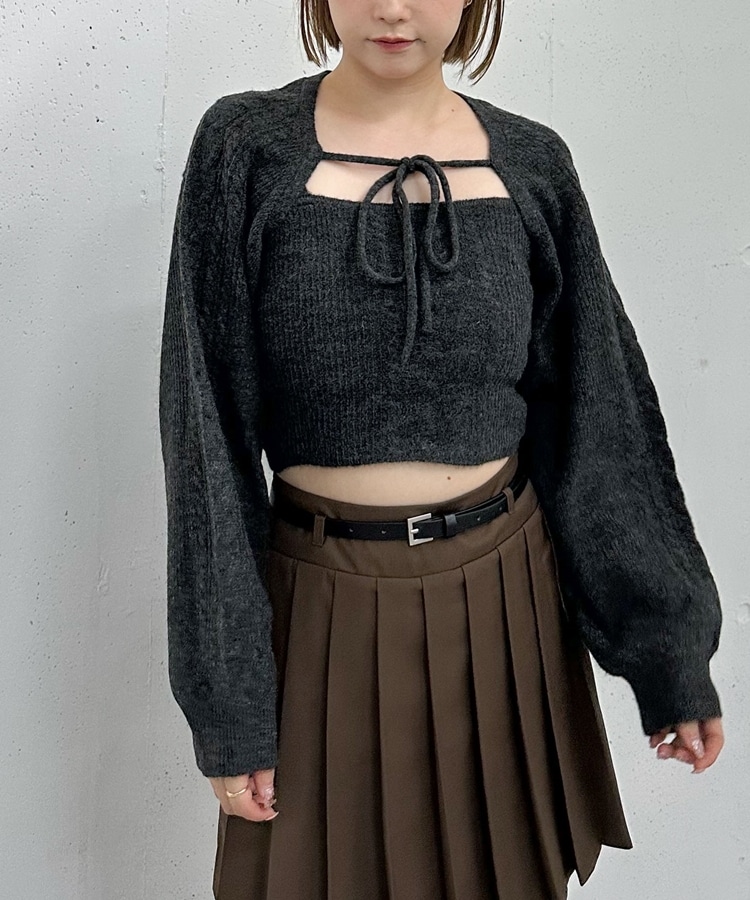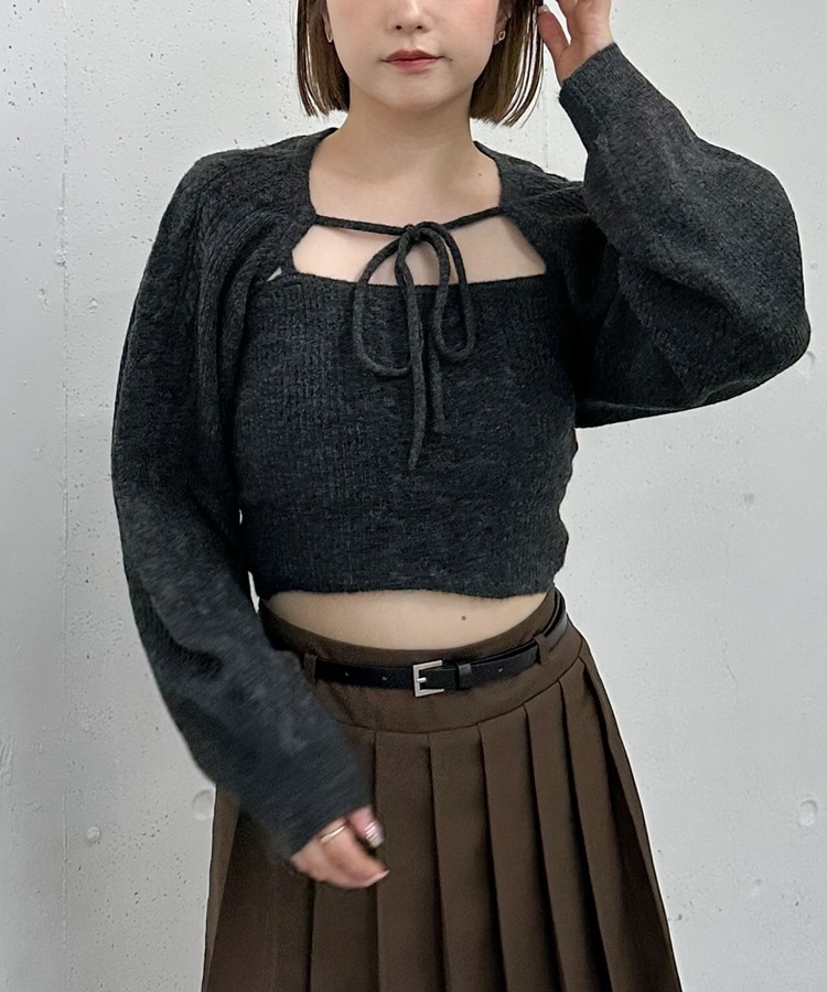 ケーブルニットボレロアンサンブル CHARCOAL GRAY