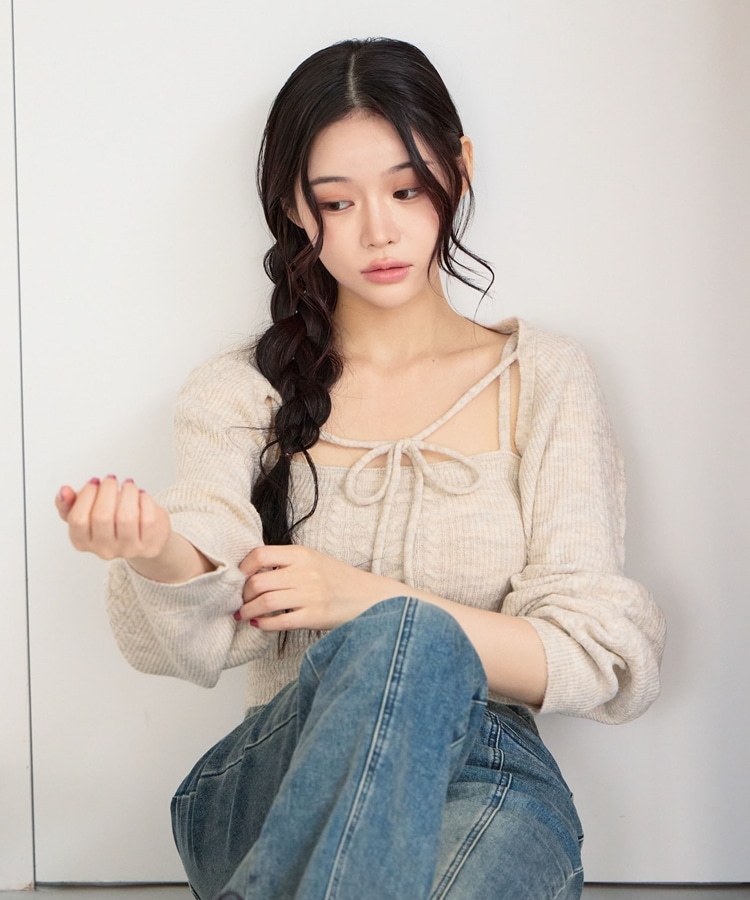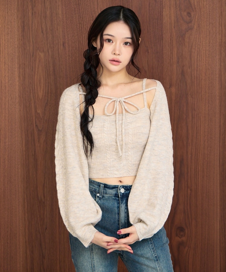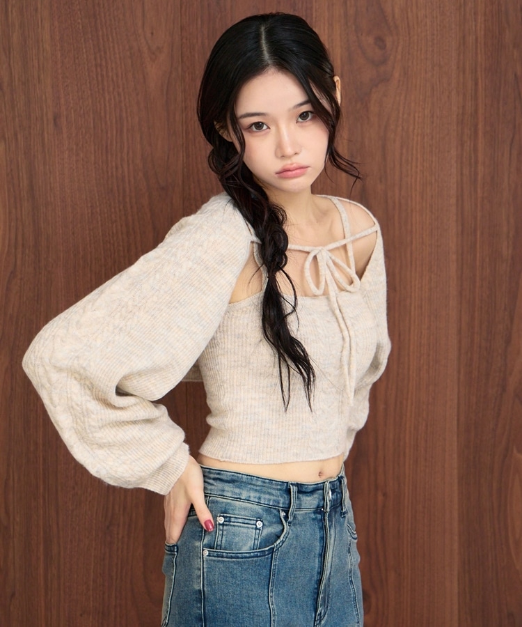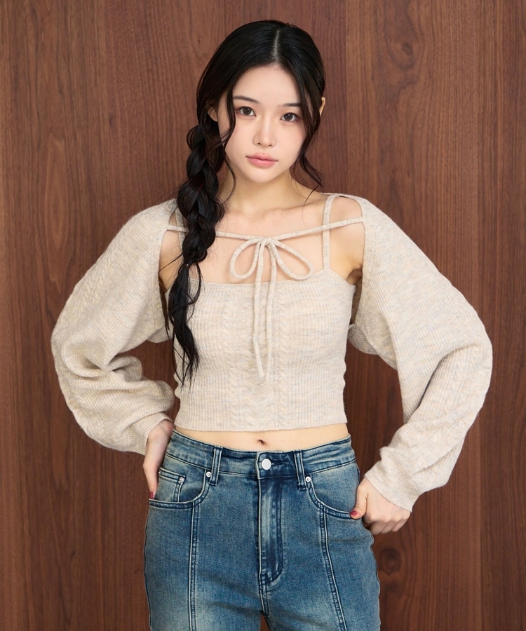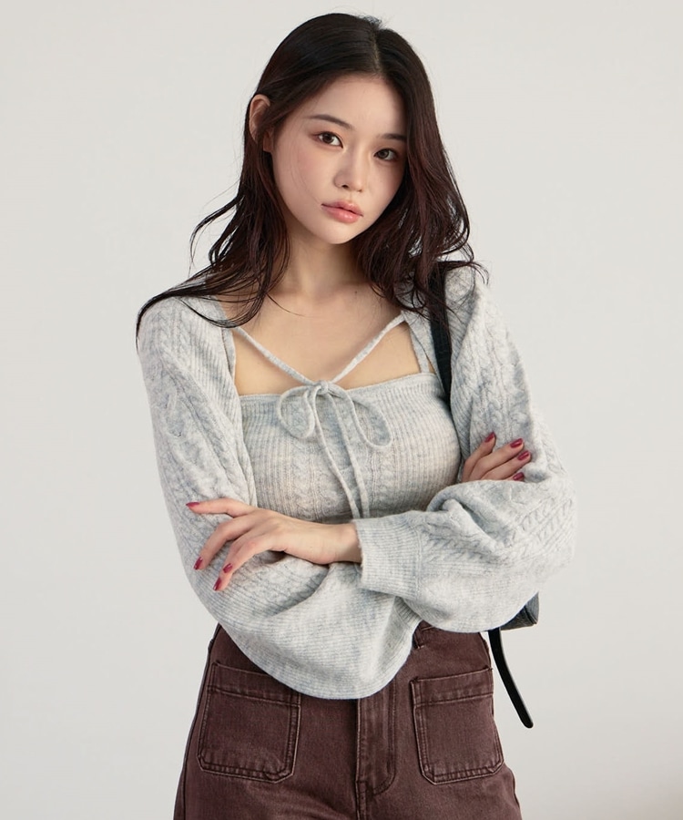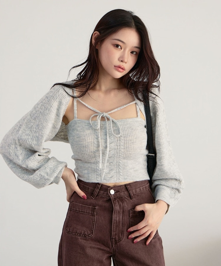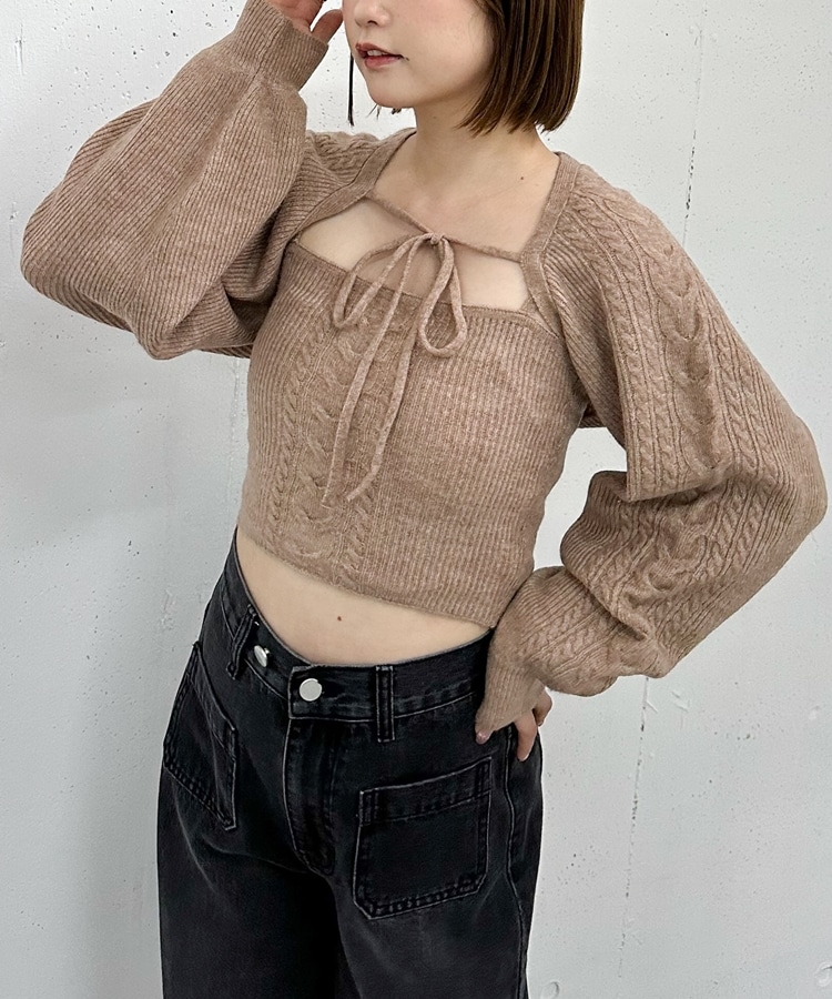 ケーブルニットボレロアンサンブル CHARCOAL GRAY