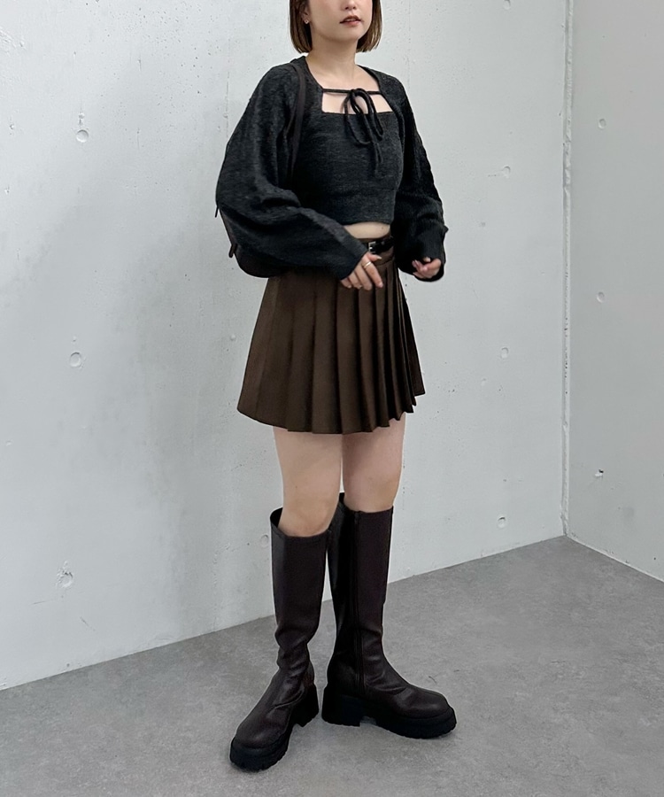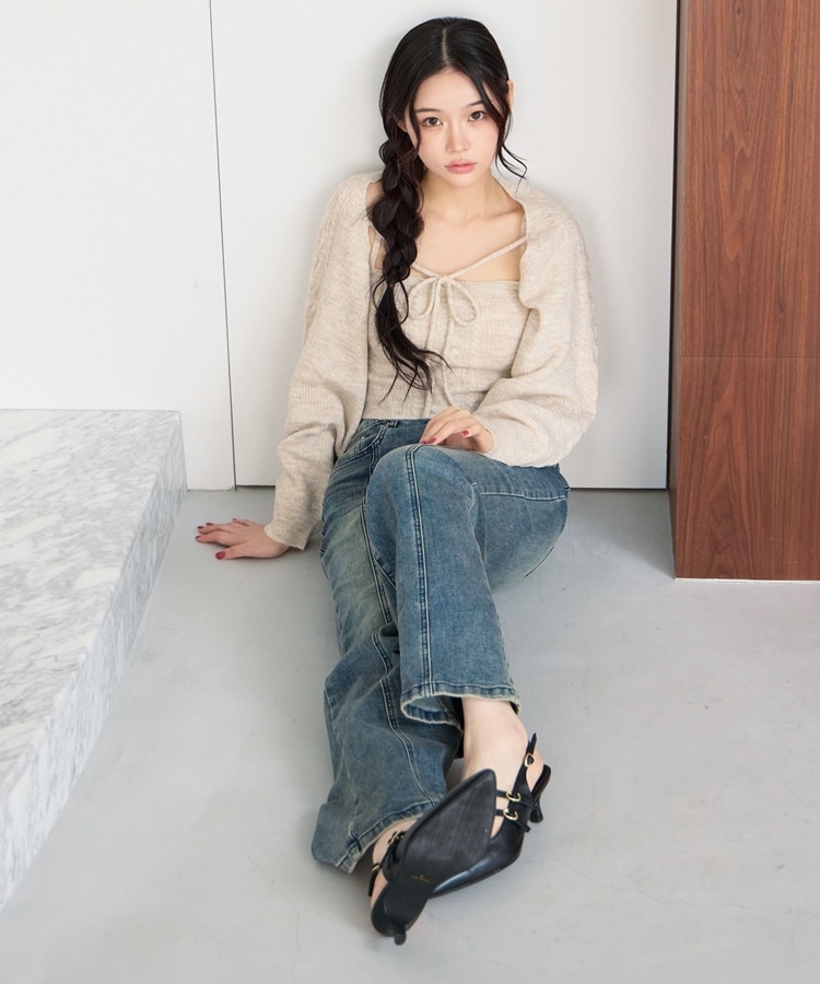 フロントのリボンは結ぶ位置で印象を変えられるデザイン。さりげない肌見せも楽しめます◎