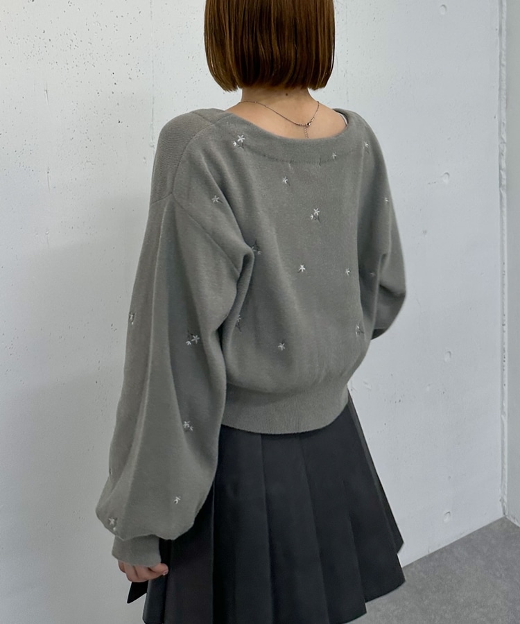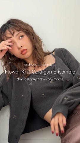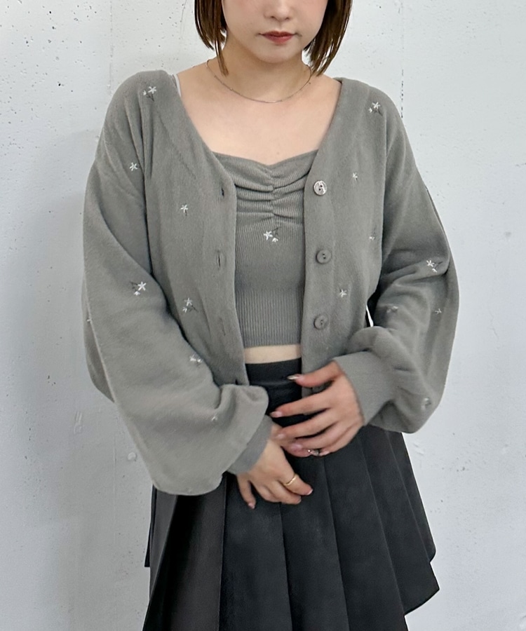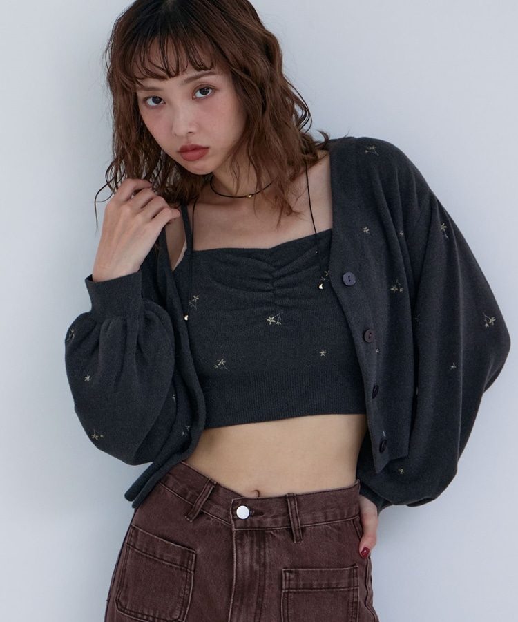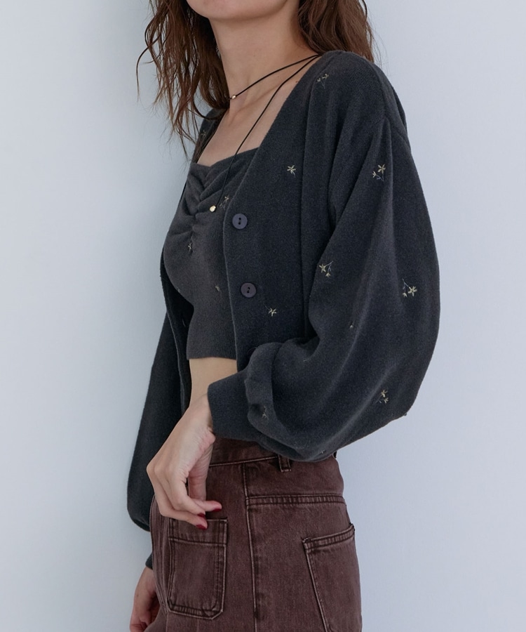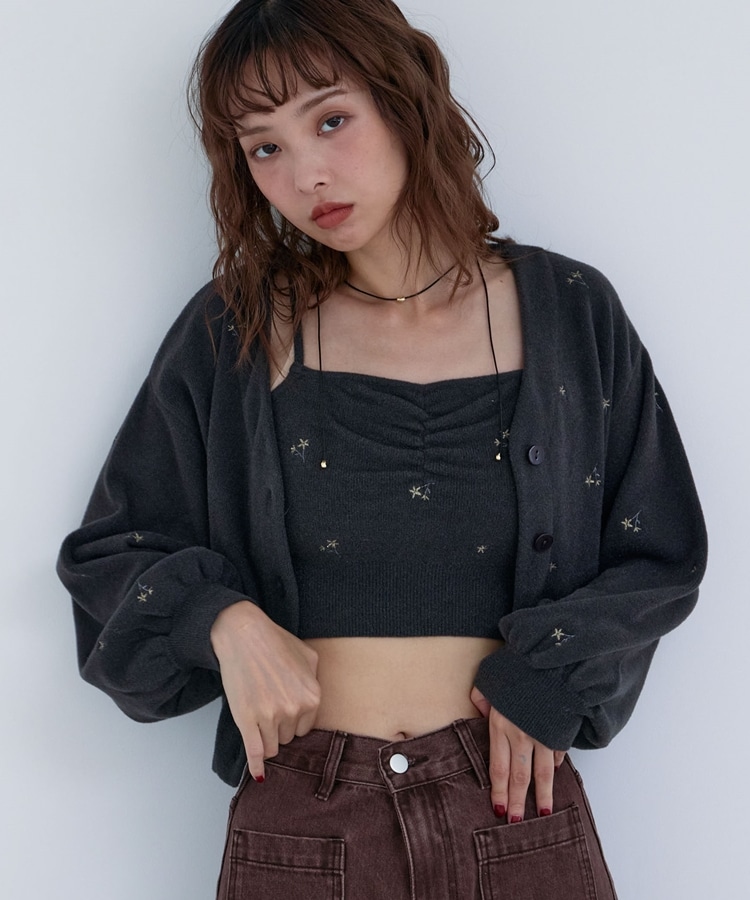 フラワー刺繍ニットCDアンサンブル CHARCOAL GRAY