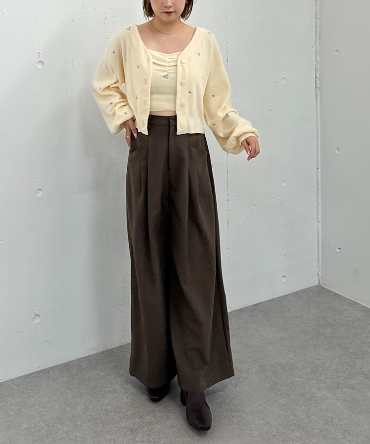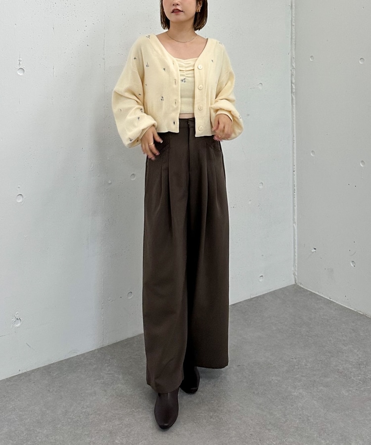 フラワー刺繍ニットCDアンサンブル MOCHA