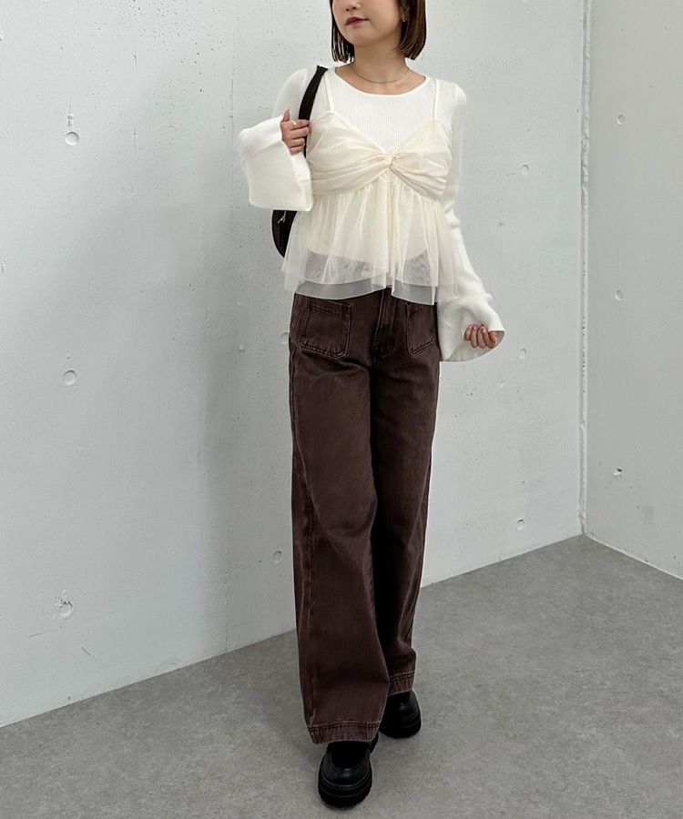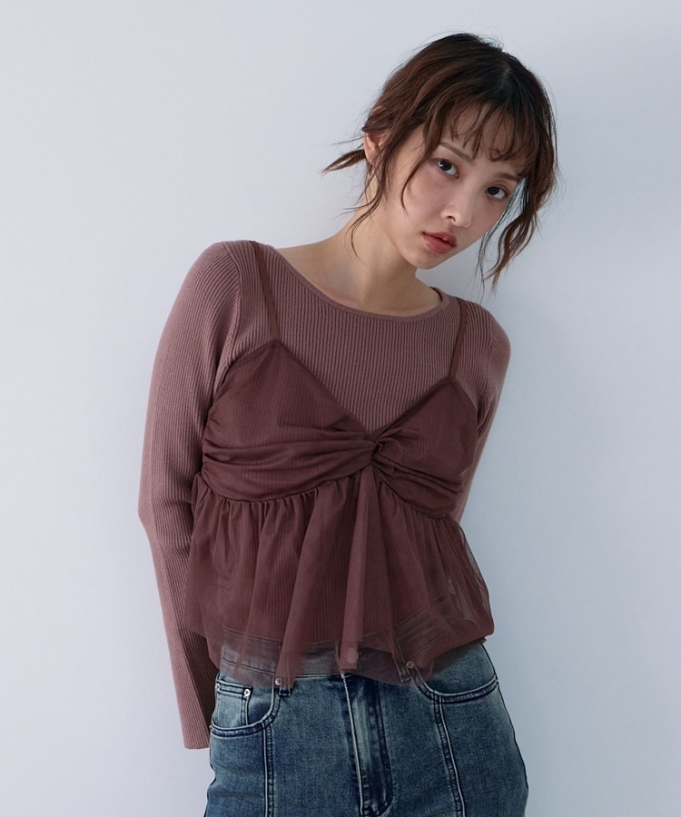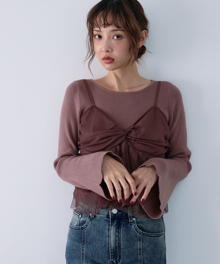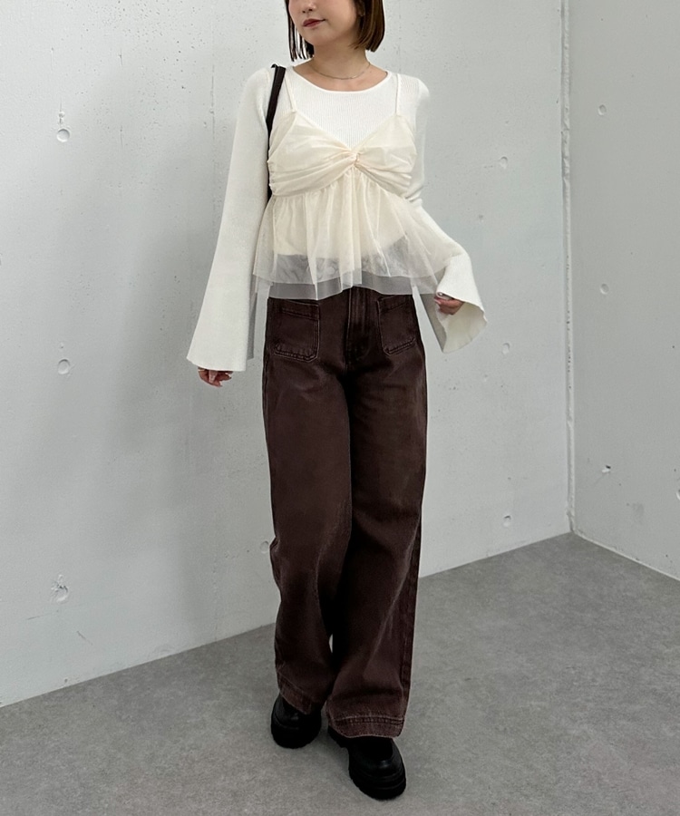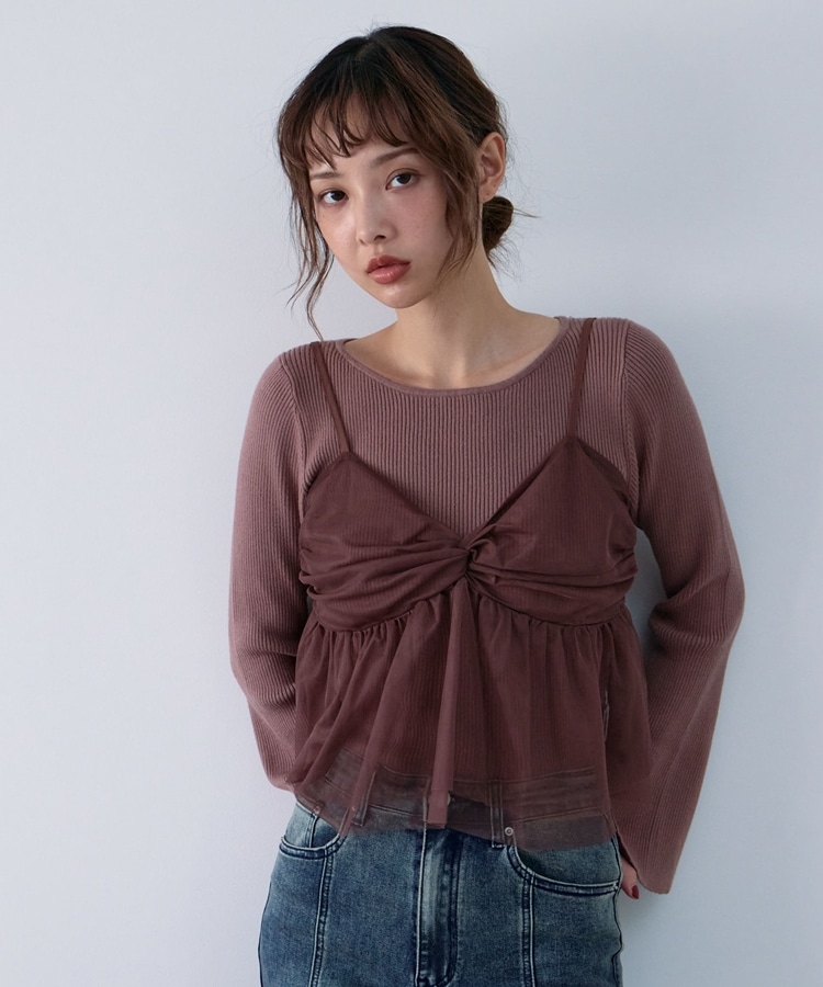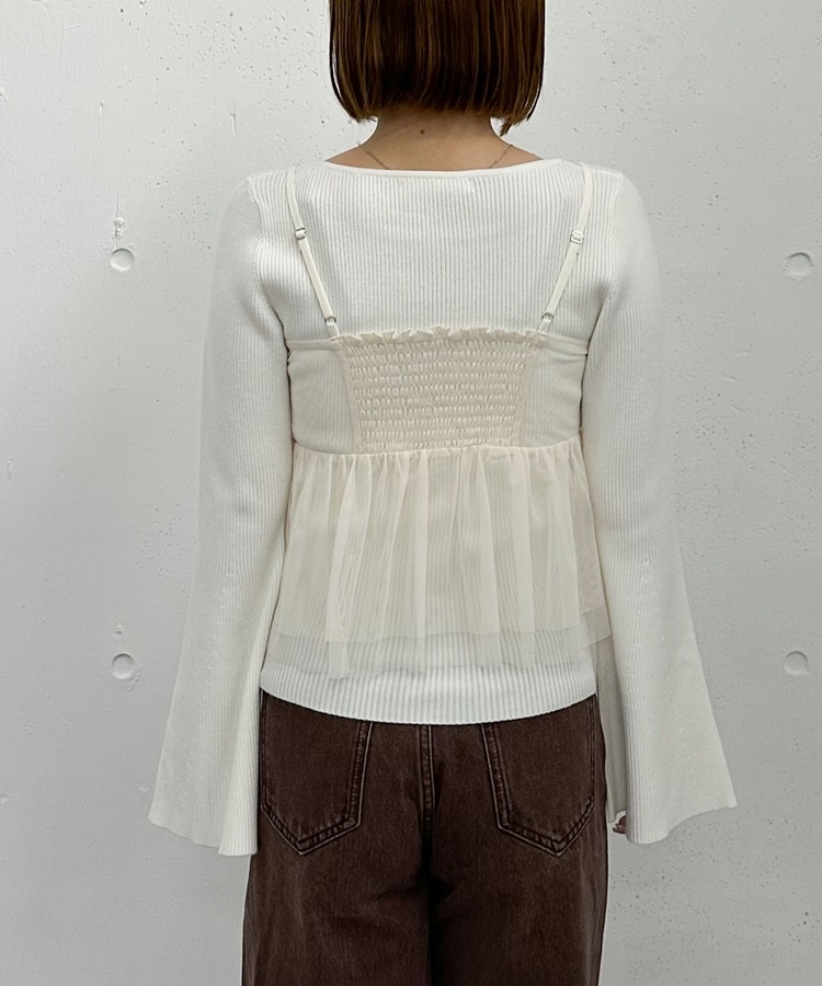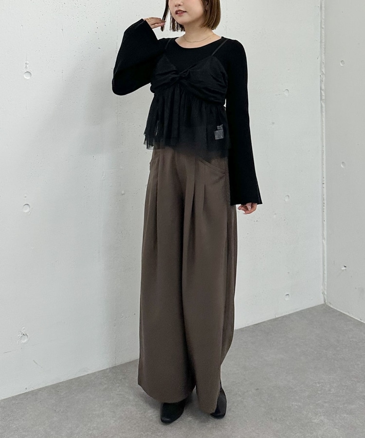 ■一枚でオシャレに着まる■archivesで人気のチュールビスチェにフレアスリーブニットがセットになった着回し力抜群アイテム。胸元のチュールにねじれを加えてボリュームアップ。裾も2枚チュールなのでふんわりとしたボリュームをプラス。透け感がしっかりとあるので柔らかく着て頂けます。セットのニットは着回ししやすいリブニット。袖がフレアになっているので女性らしさもアップ。デザイン性の高いアイテムなのでデニムやスラックスなどとシンプルにスタイリングするのがおススメです。ーーーーーーーーーーーーーーー透け感:チュニックあり/ニットなし裏地:なし伸縮性:あり光沢感:なし生地厚さ:普通洗濯方法:手洗い可※詳しいお手入れ方法は商品についているタグをご覧くださいーーーーーーーーーーーーーーー※ご利用のモニター環境により、実際の色味と多少異なる場合がございます。