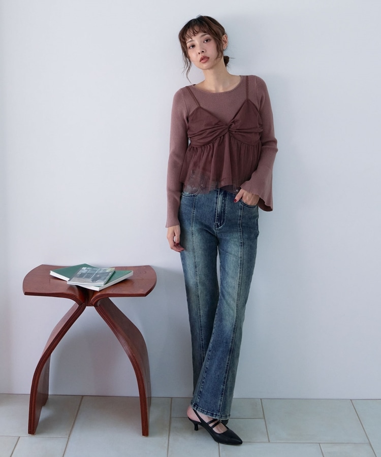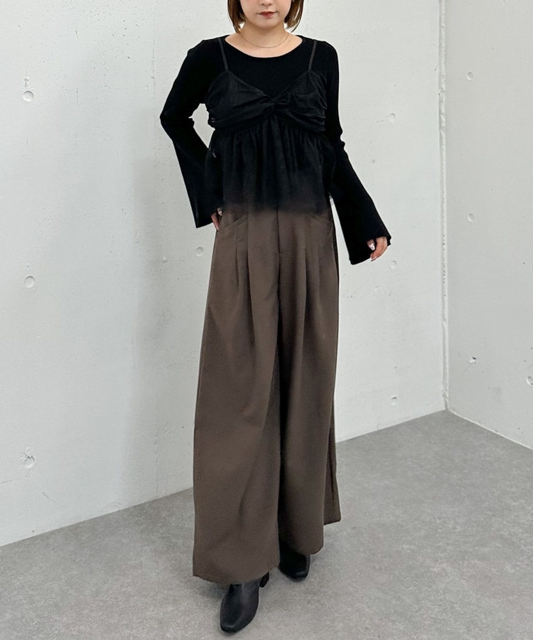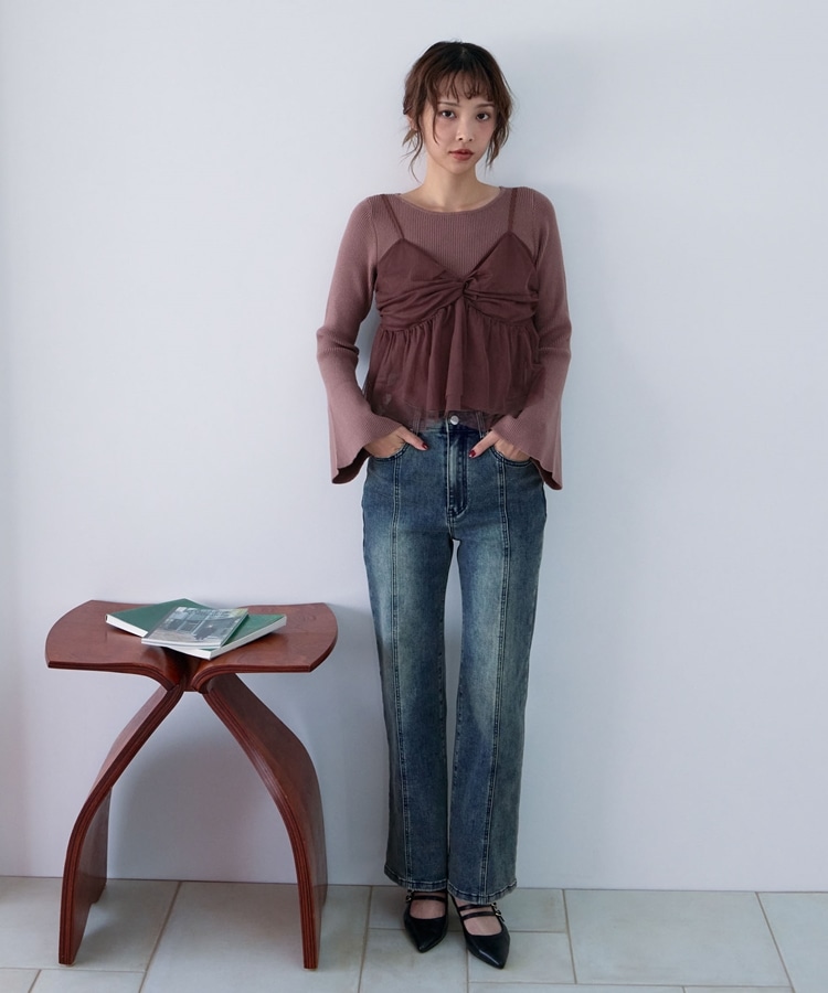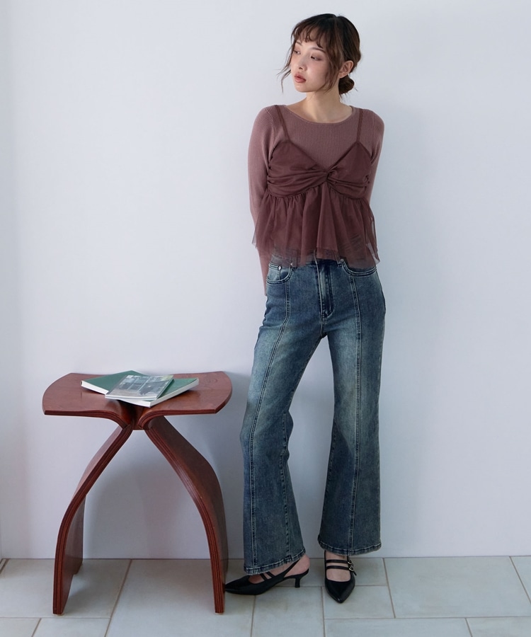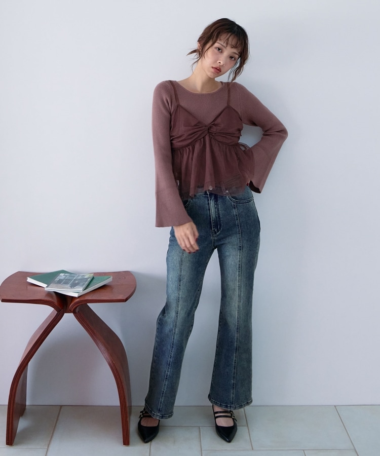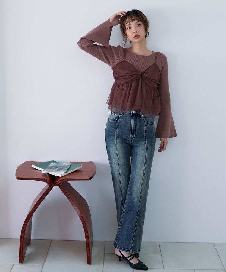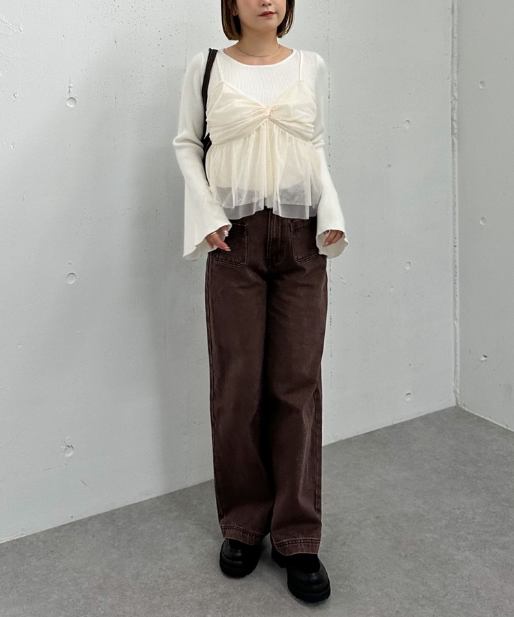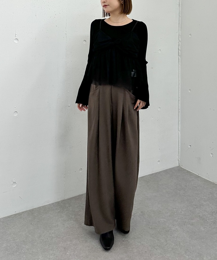 ■一枚でオシャレに着まる■archivesで人気のチュールビスチェにフレアスリーブニットがセットになった着回し力抜群アイテム。胸元のチュールにねじれを加えてボリュームアップ。裾も2枚チュールなのでふんわりとしたボリュームをプラス。透け感がしっかりとあるので柔らかく着て頂けます。セットのニットは着回ししやすいリブニット。袖がフレアになっているので女性らしさもアップ。デザイン性の高いアイテムなのでデニムやスラックスなどとシンプルにスタイリングするのがおススメです。ーーーーーーーーーーーーーーー透け感:チュニックあり/ニットなし裏地:なし伸縮性:あり光沢感:なし生地厚さ:普通洗濯方法:手洗い可※詳しいお手入れ方法は商品についているタグをご覧くださいーーーーーーーーーーーーーーー※ご利用のモニター環境により、実際の色味と多少異なる場合がございます。