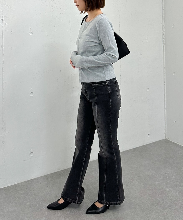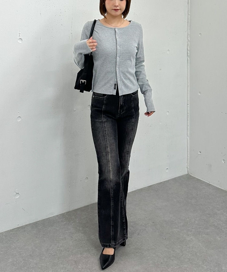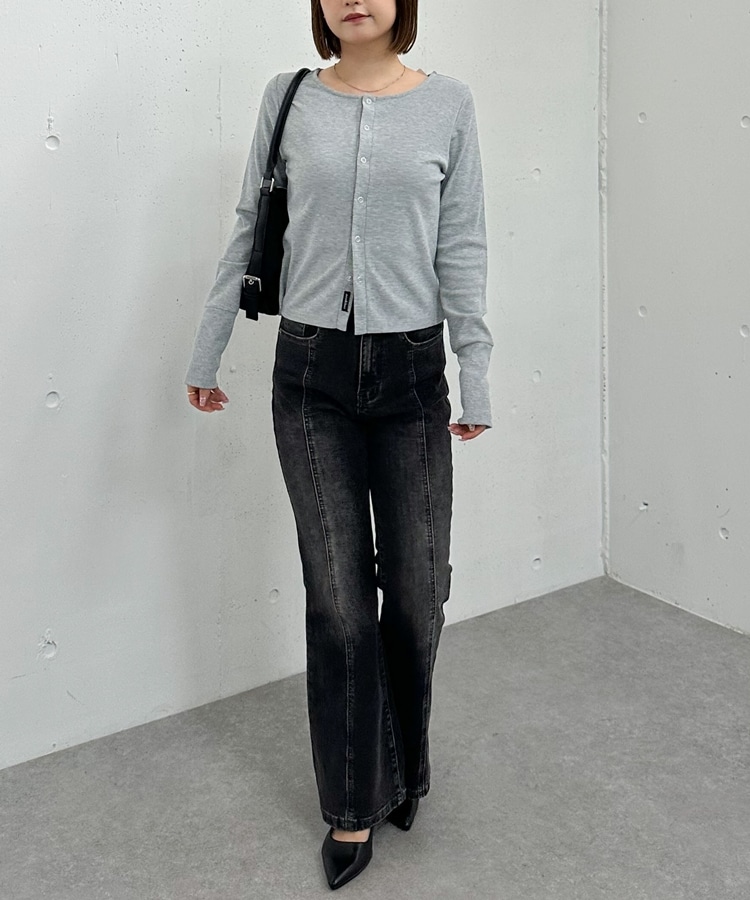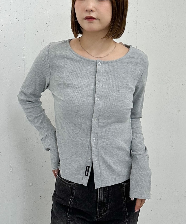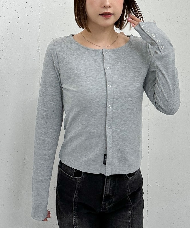 リングスナップカットリブカーディガン GRAY