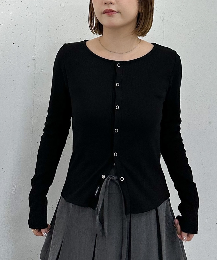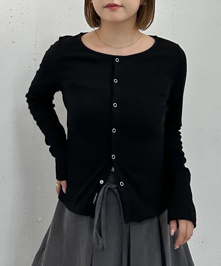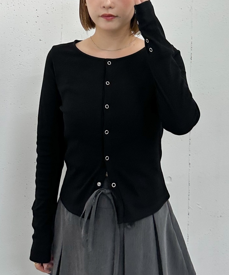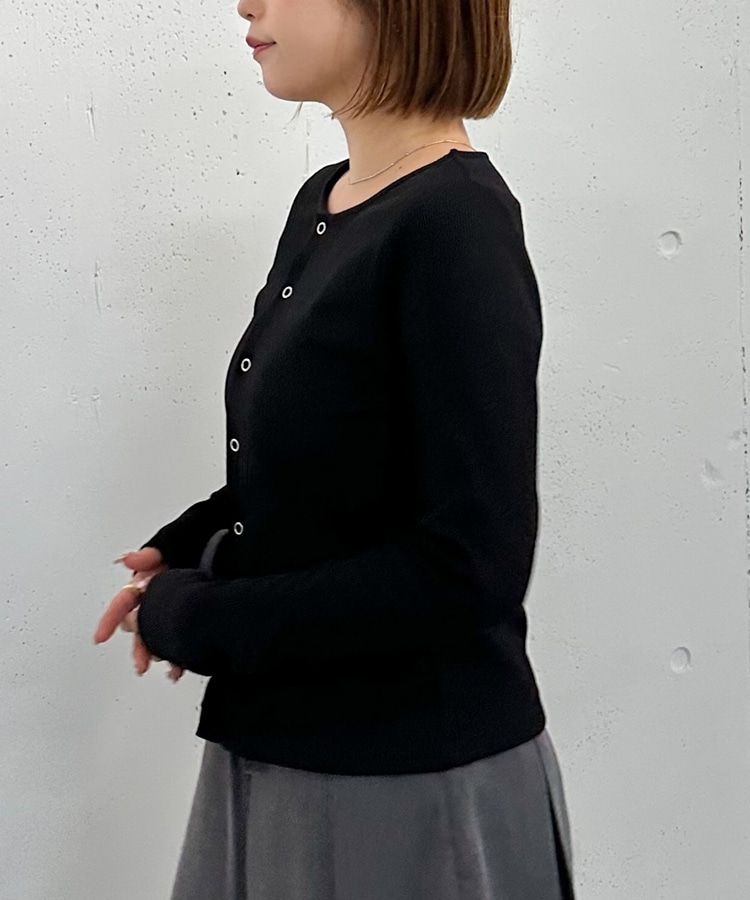 リングスナップカットリブカーディガン BLACK