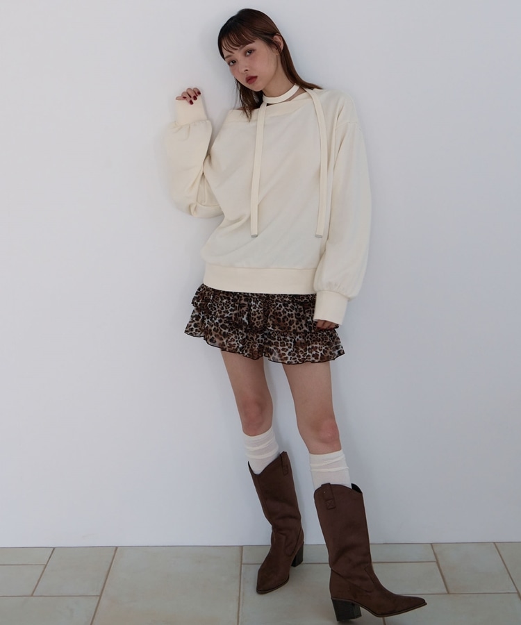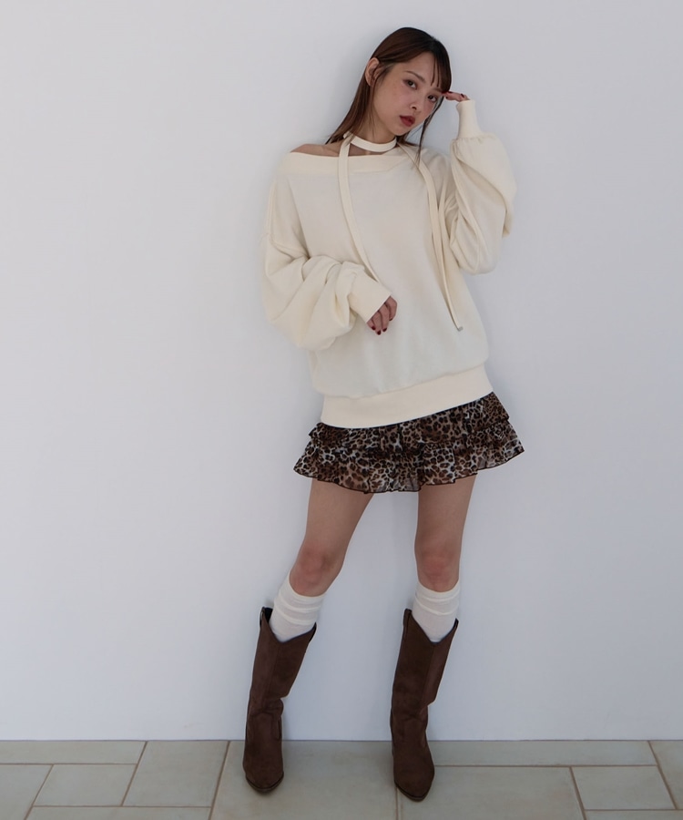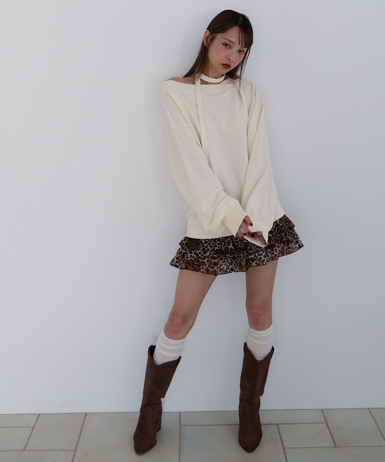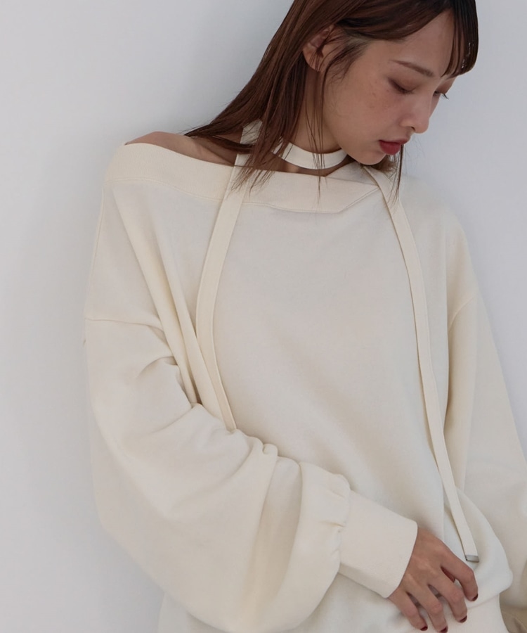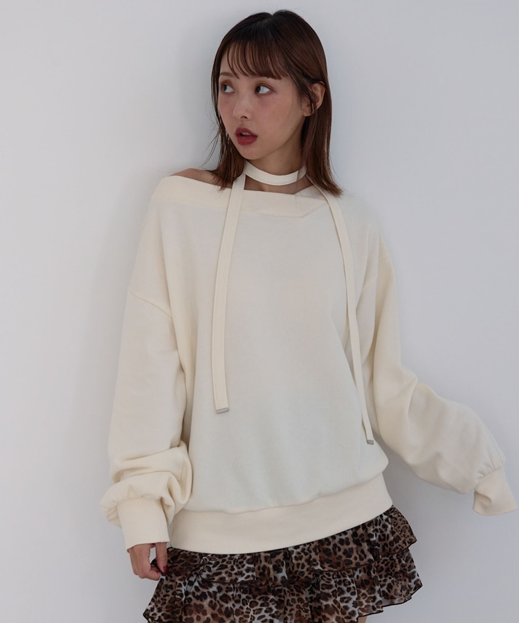 チョーカー付クロスオフショルスウェット IVORY
