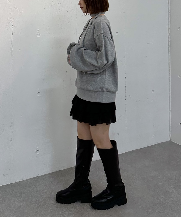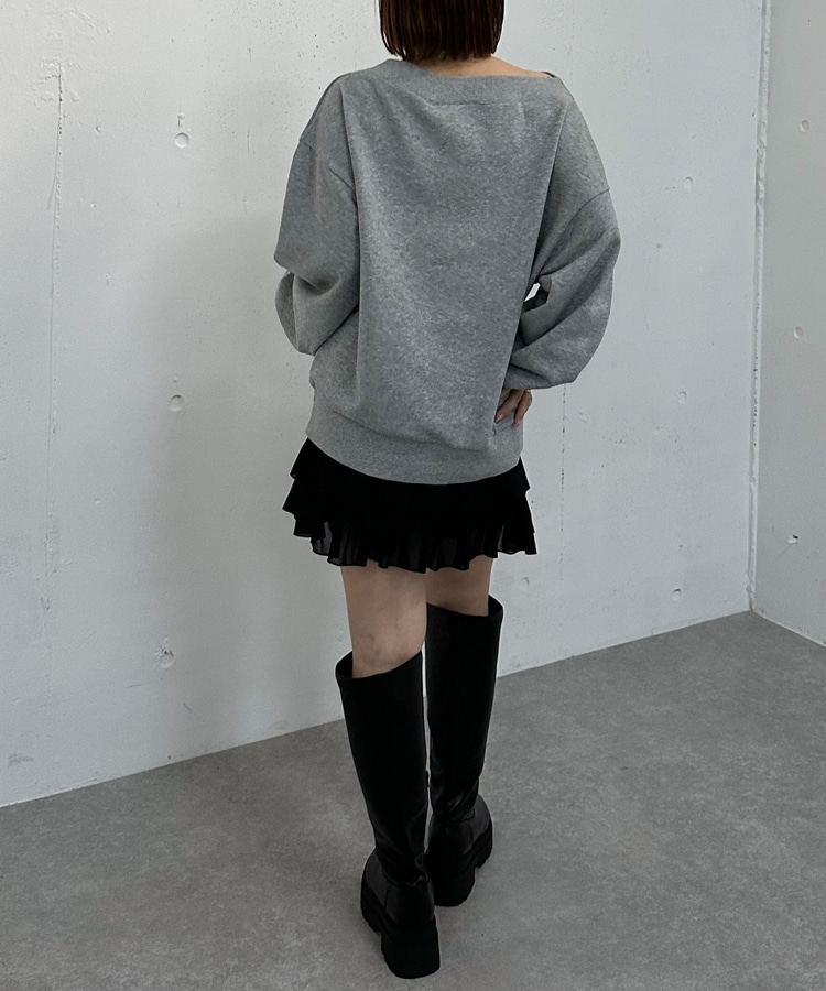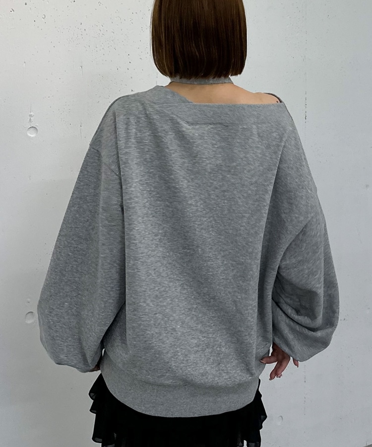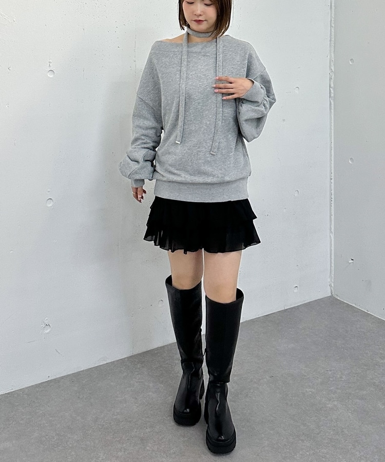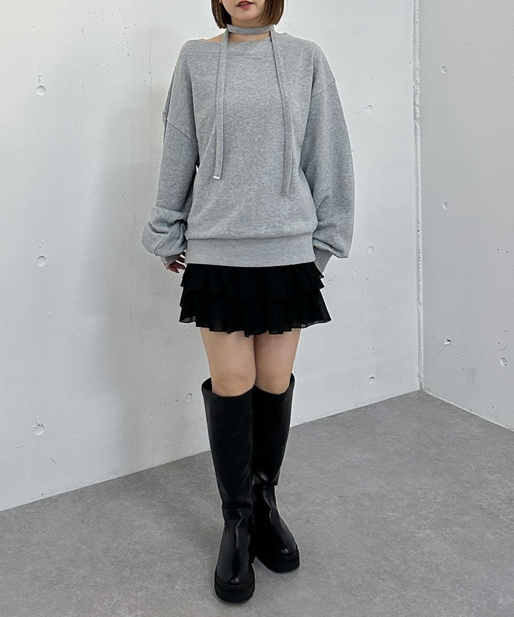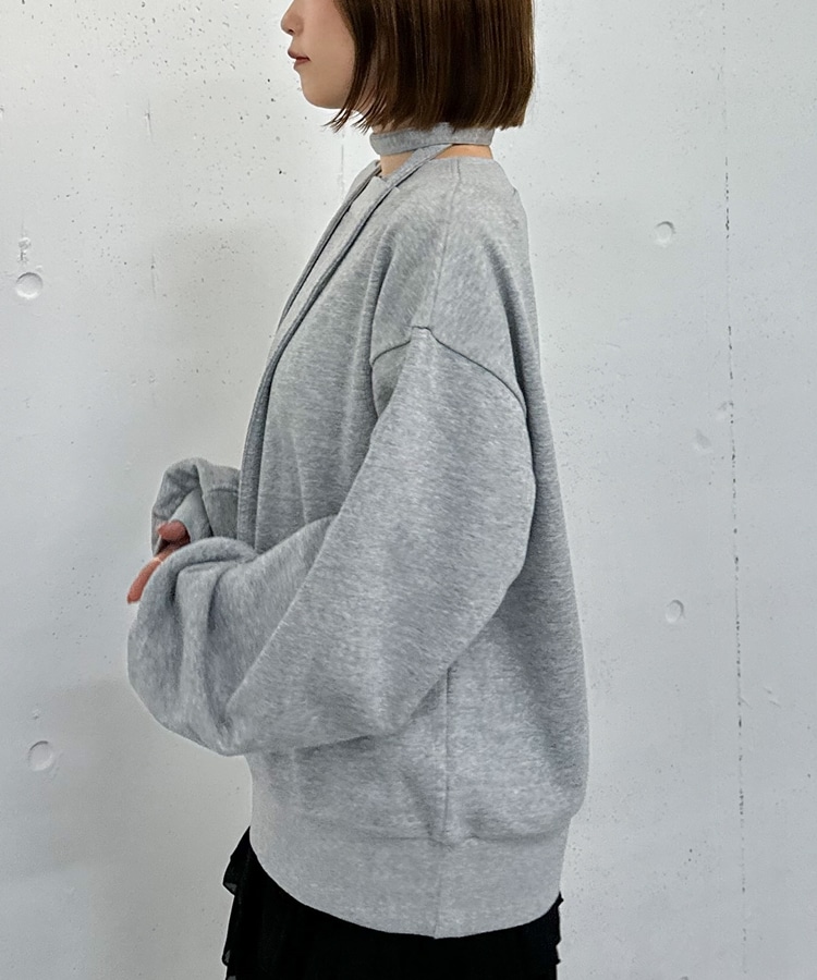 チョーカー付クロスオフショルスウェット GRAY