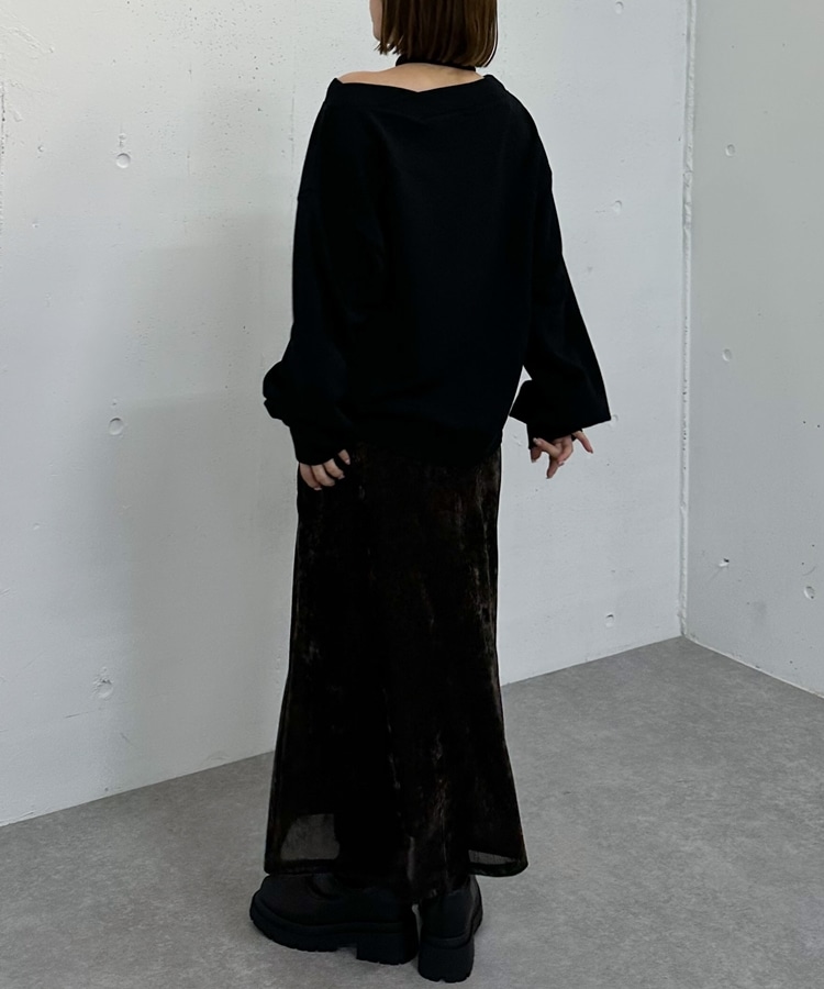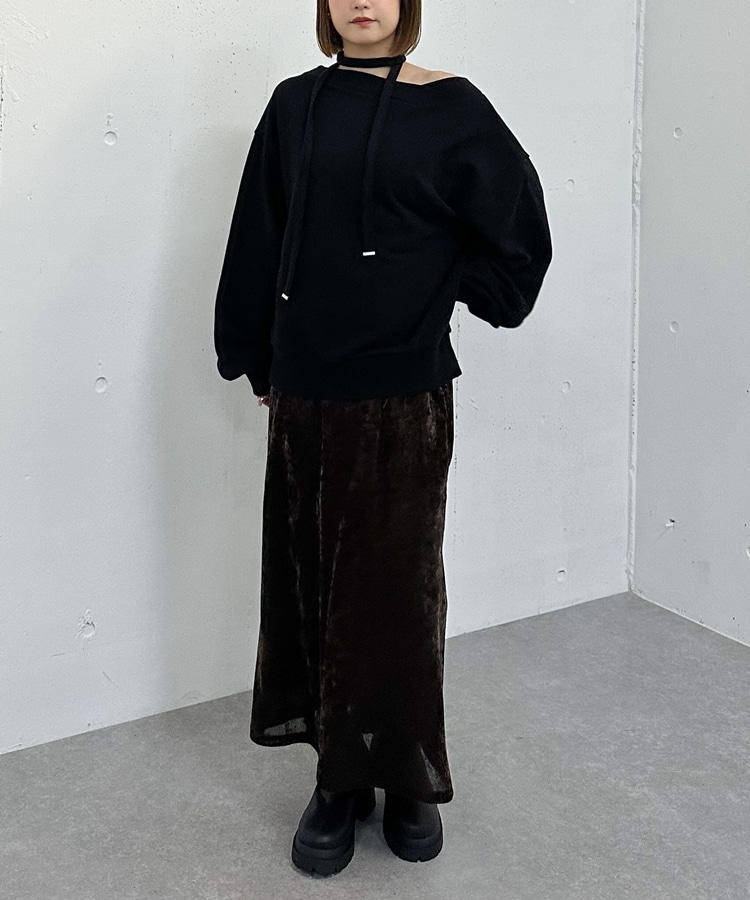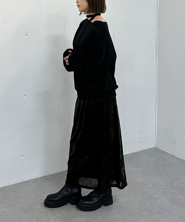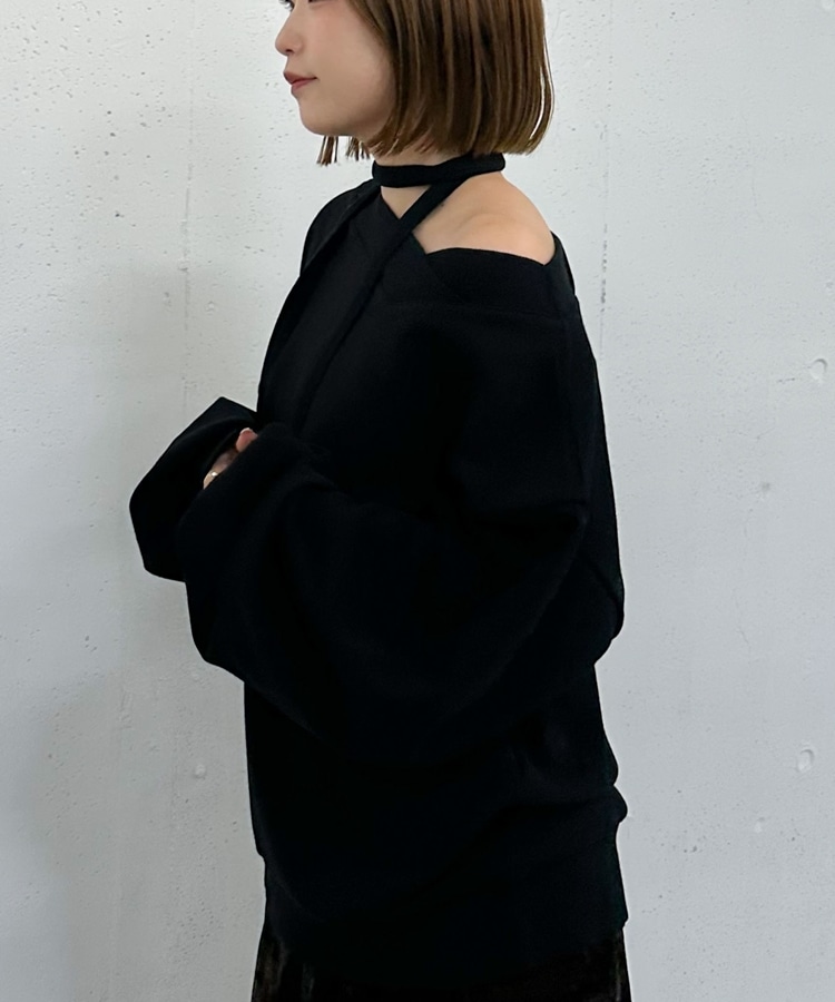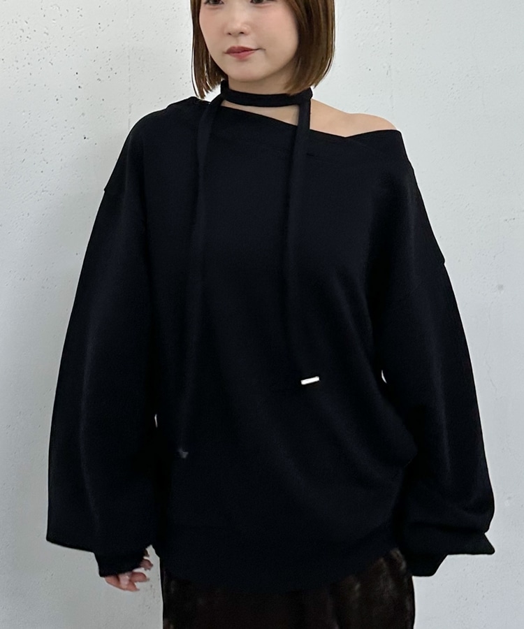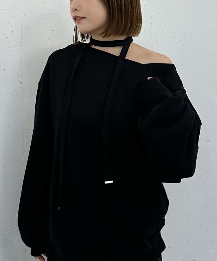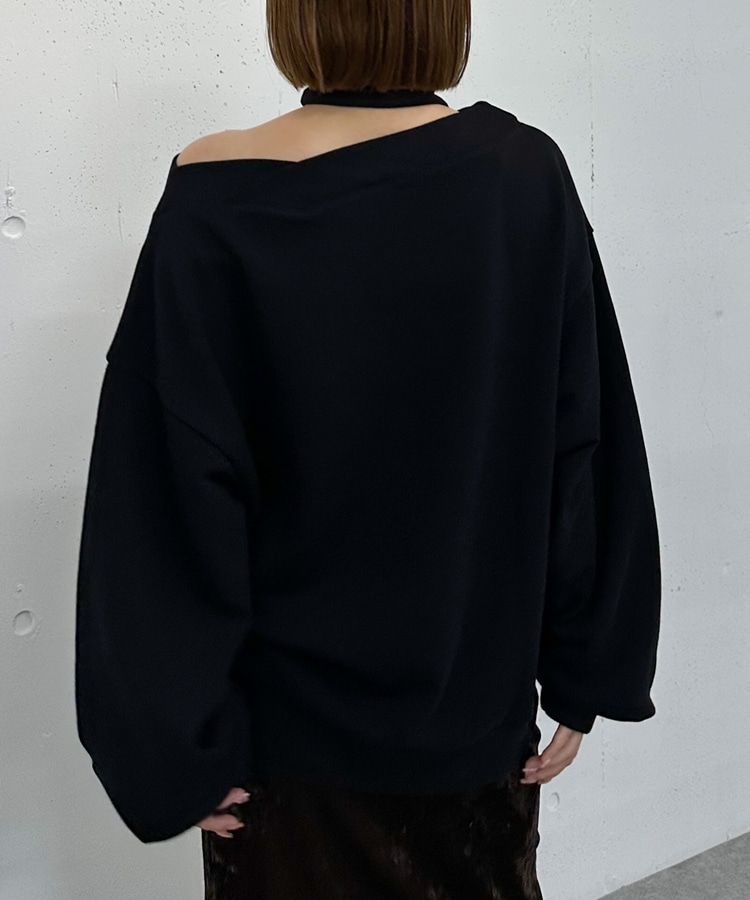チョーカー付クロスオフショルスウェット BLACK