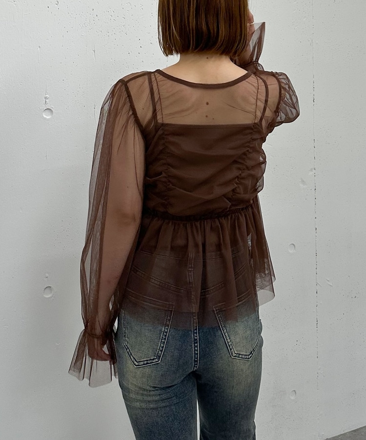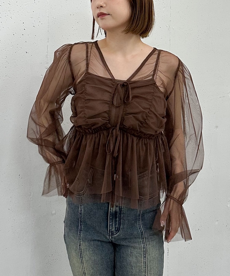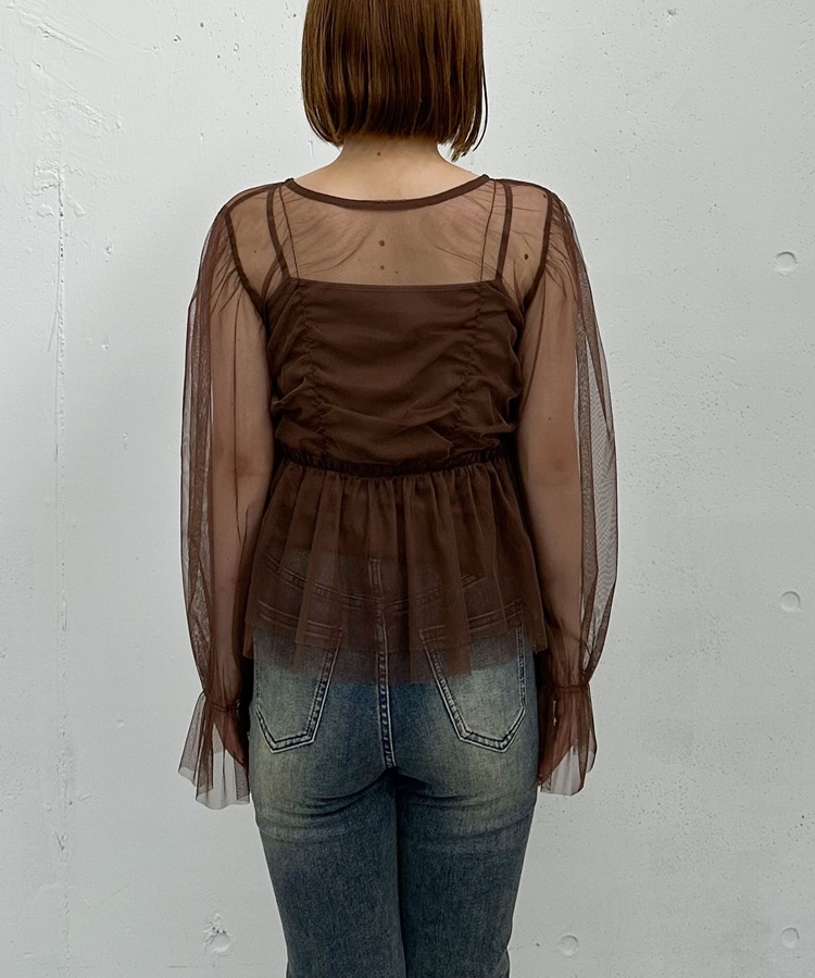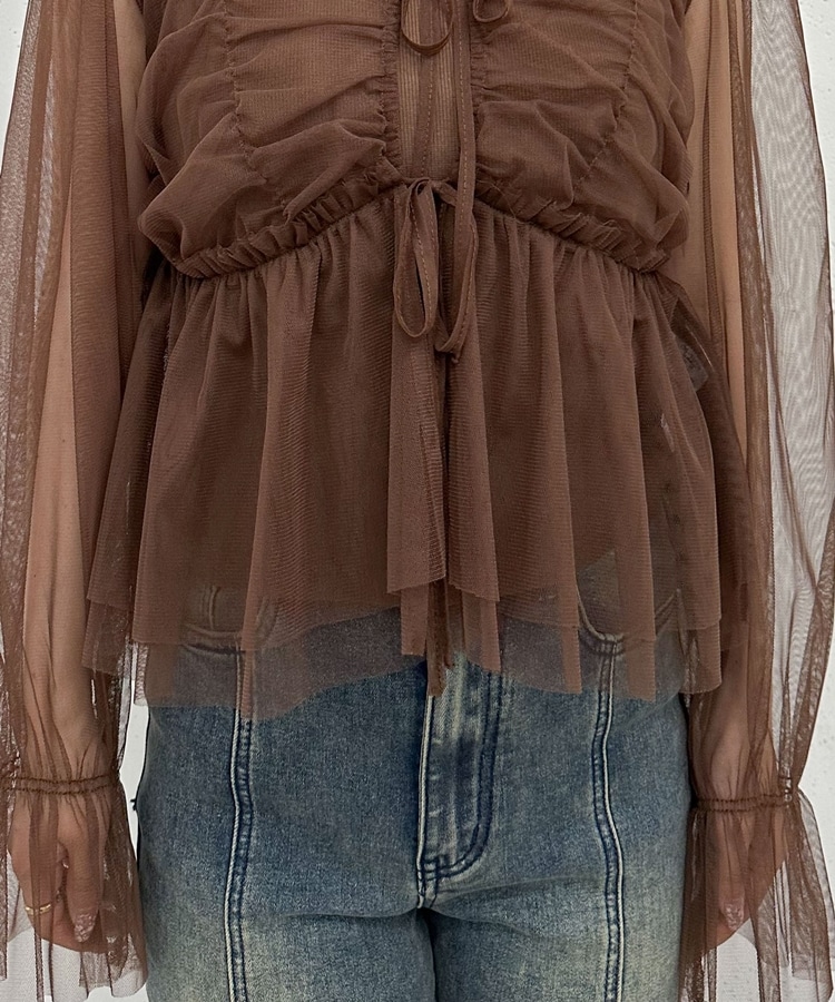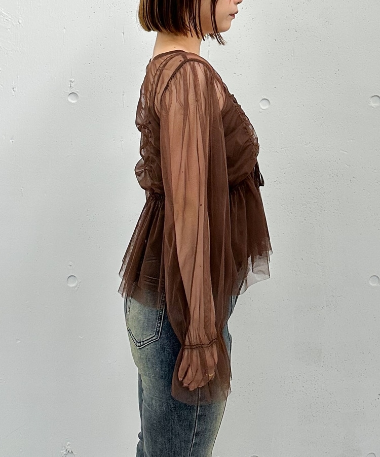 チュールギャザーペプラムブラウス BROWN