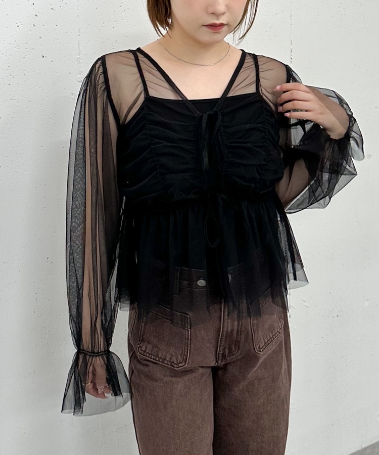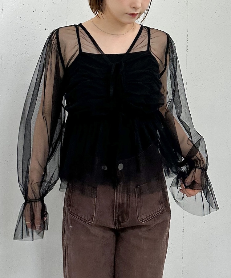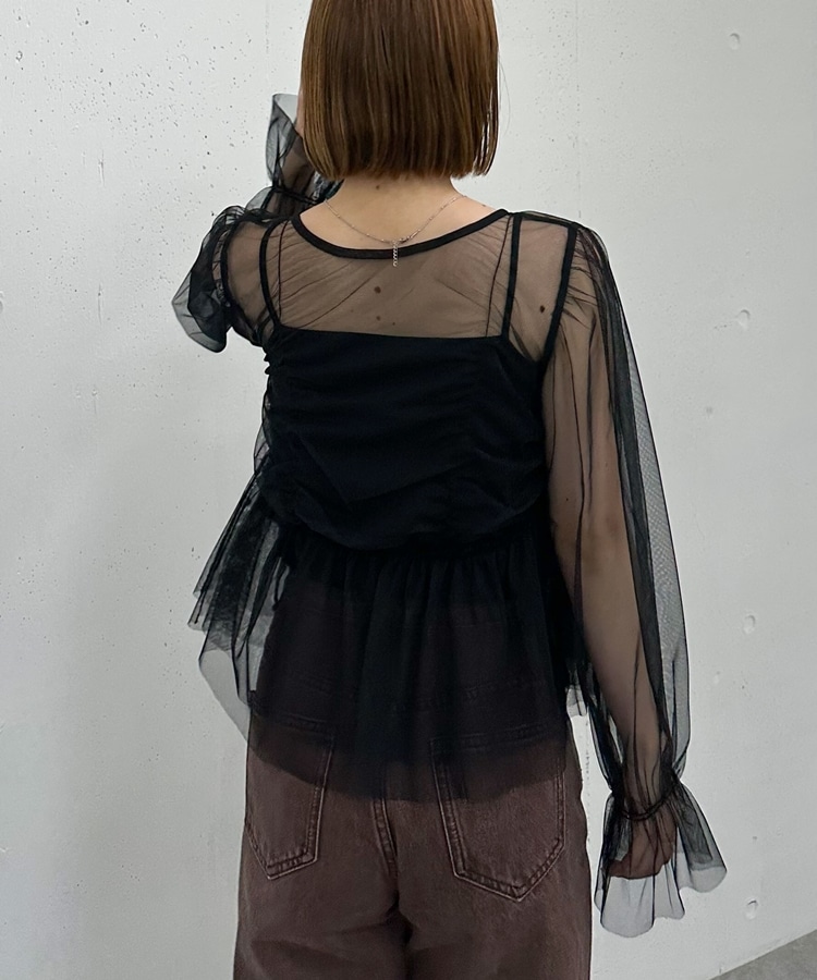 チュールギャザーペプラムブラウス BLACK