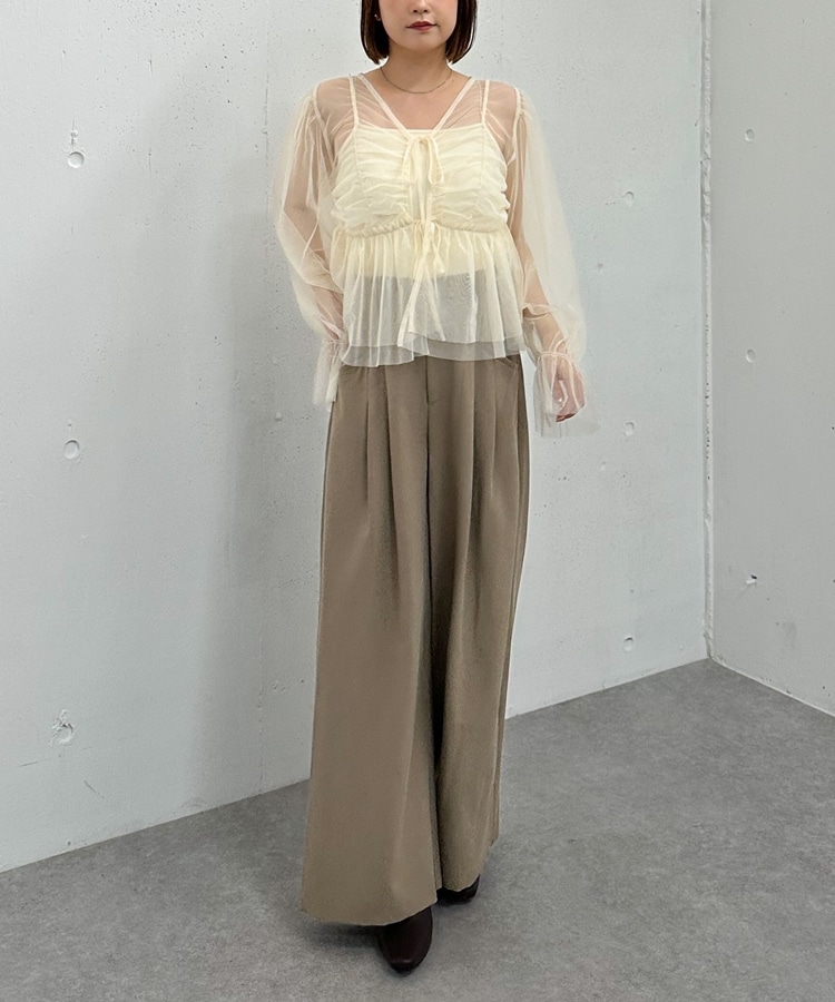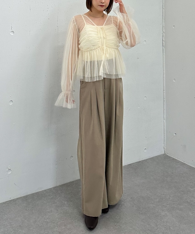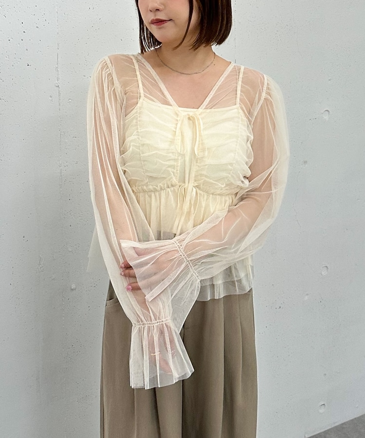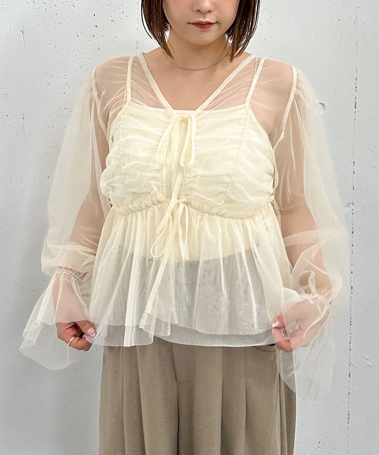チュールギャザーペプラムブラウス IVORY