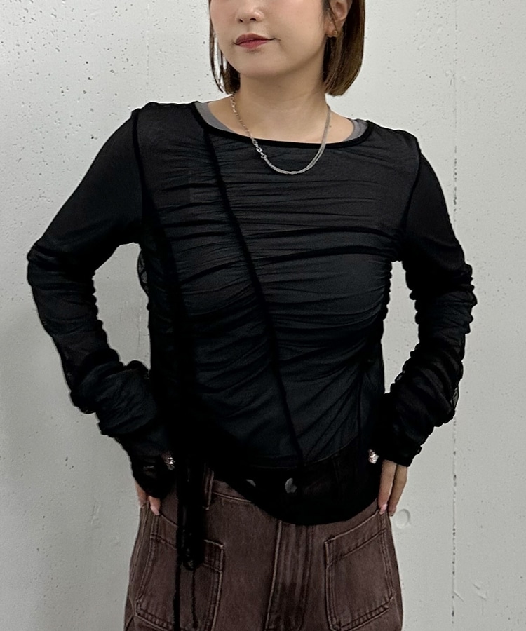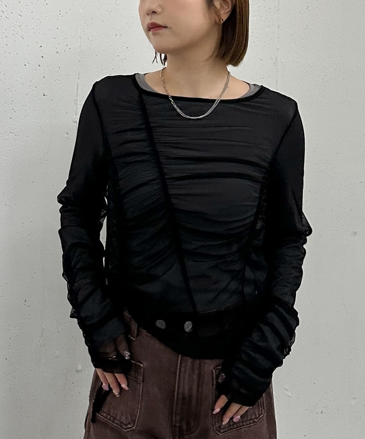 ギャザー入りのチュールトップス+シアートップスのセットアイテム。