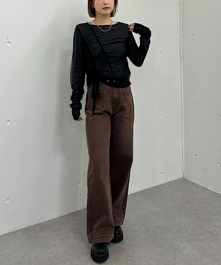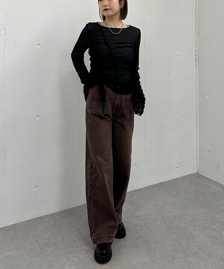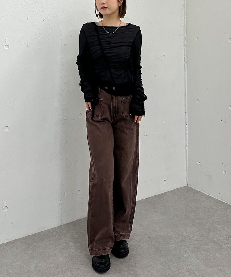 チュールギャザーTOPS×シアーTOPS SET BROWN