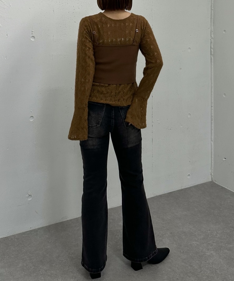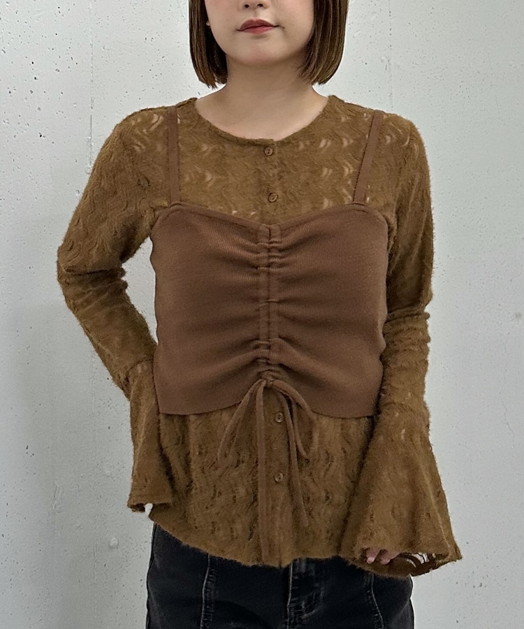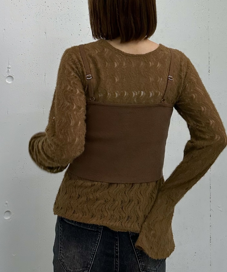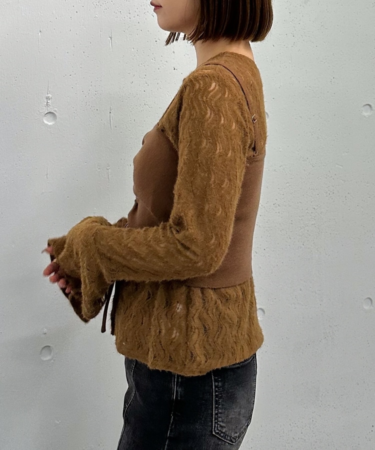 ニットビスチェx起毛レースブラウスSET MOCHA