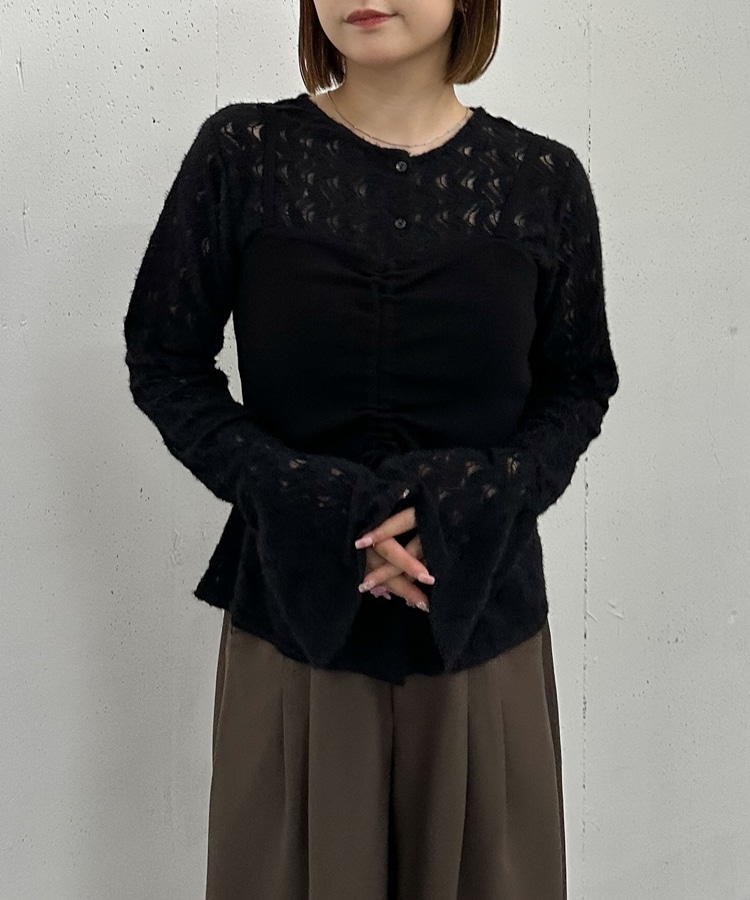 起毛感のあるレースブラウスは、軽やかな薄手素材ながらふわっと柔らかい質感が魅力。