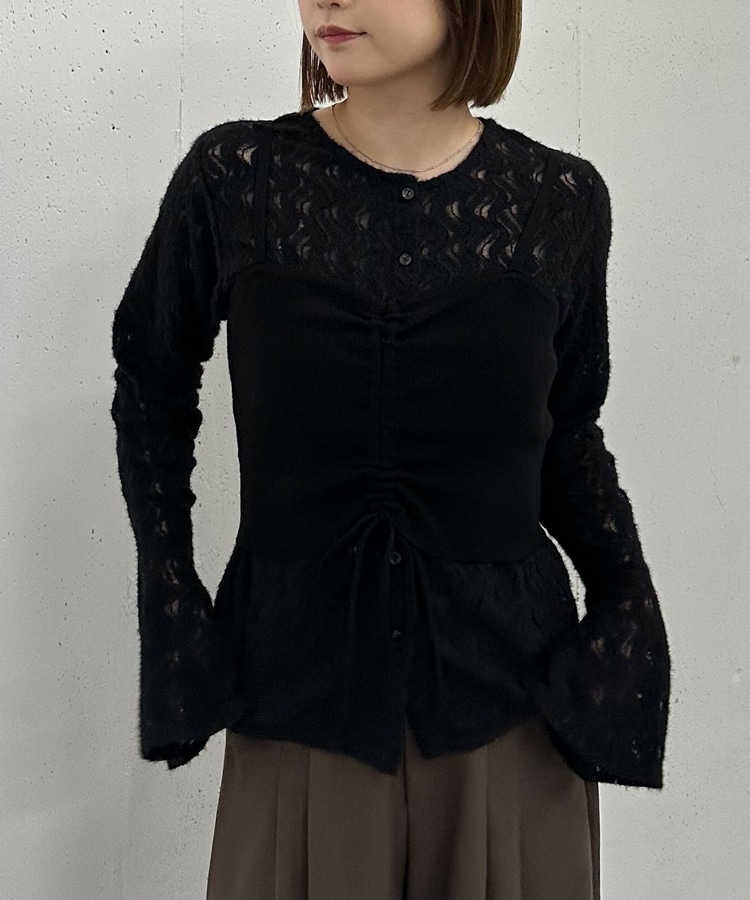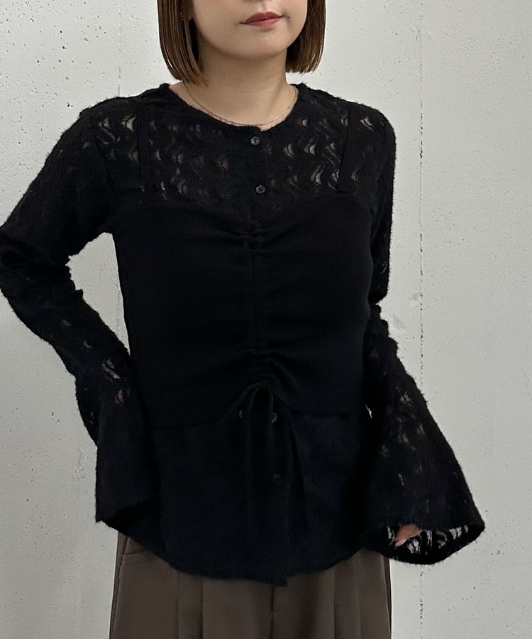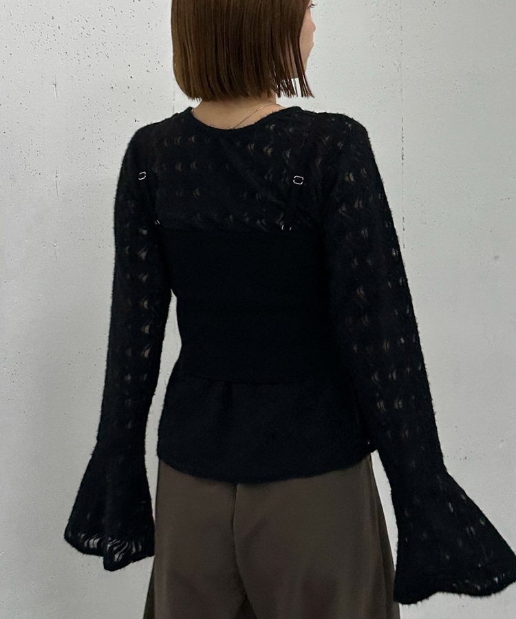ニットビスチェx起毛レースブラウスSET BLACK