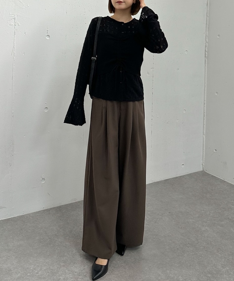 ニットビスチェは、フロントのドロストで丈感やシルエットをアレンジ可能。