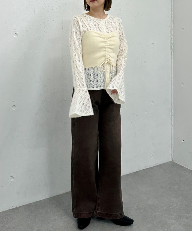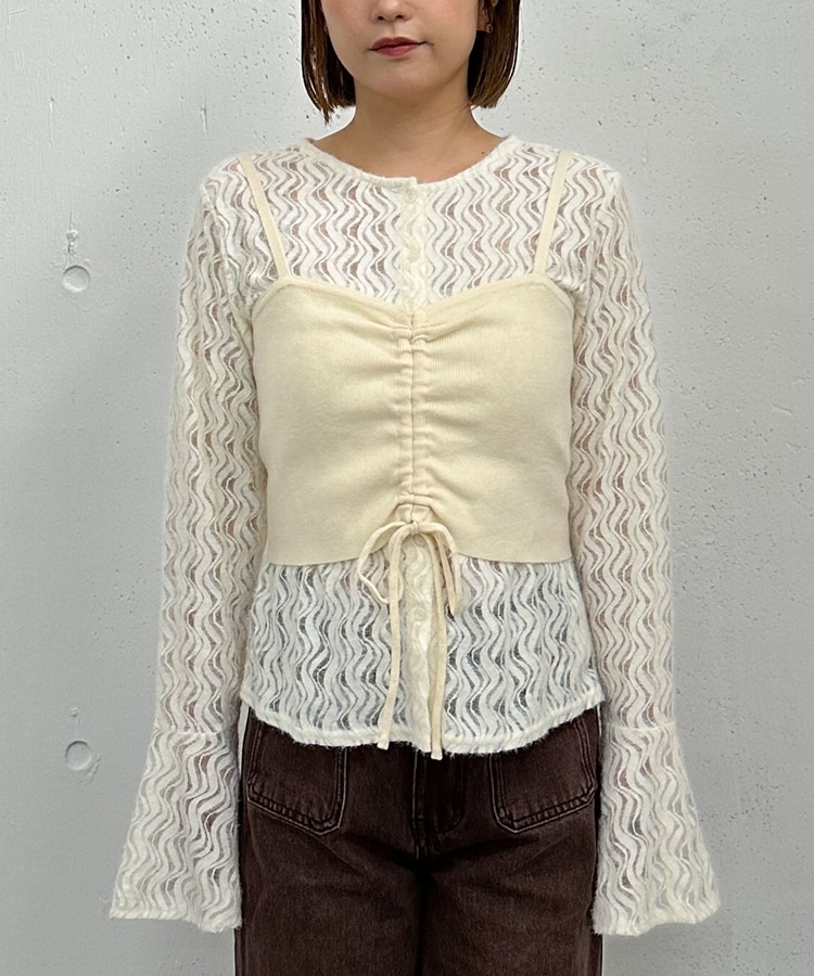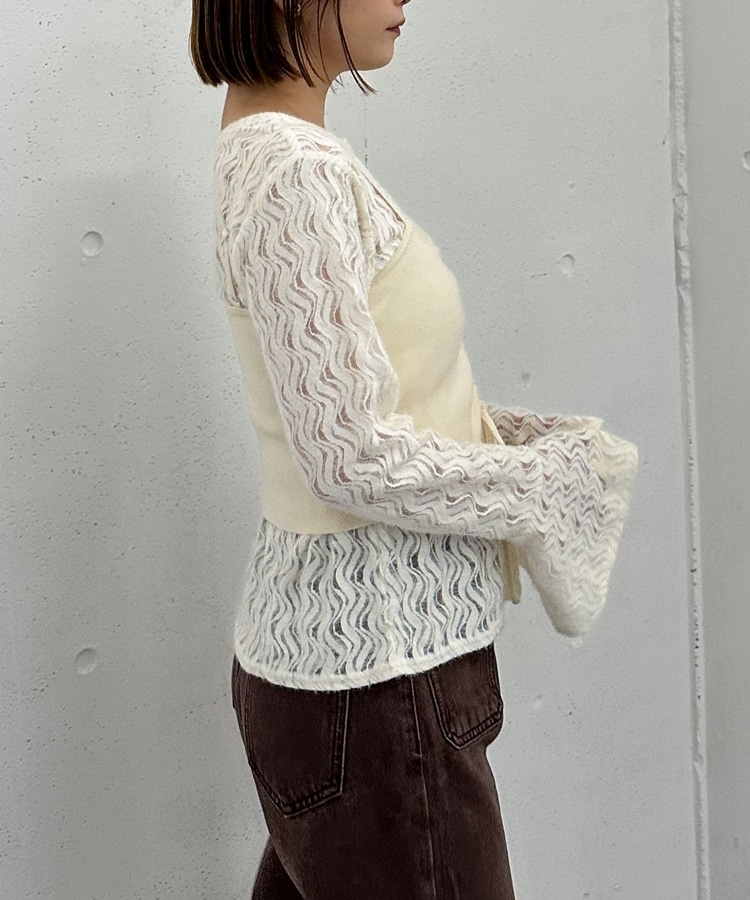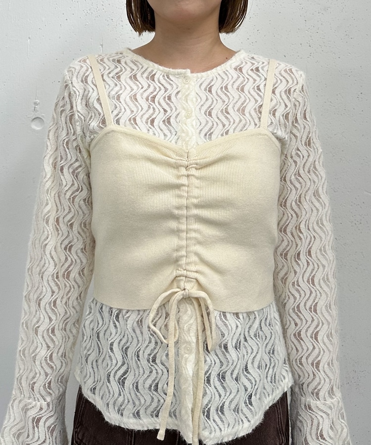 ニットビスチェx起毛レースブラウスSET IVORY