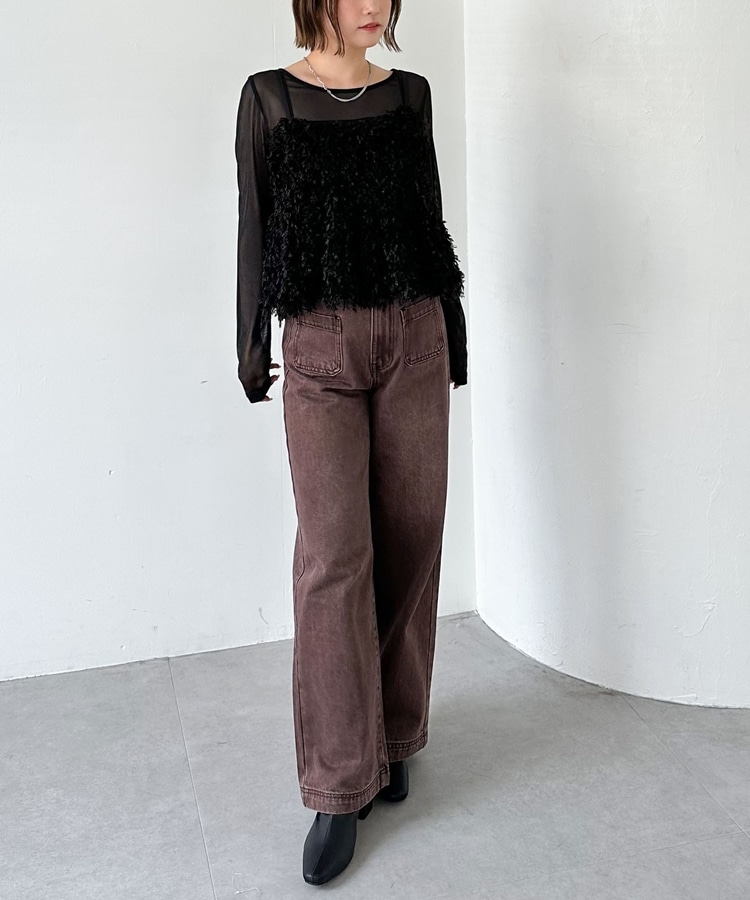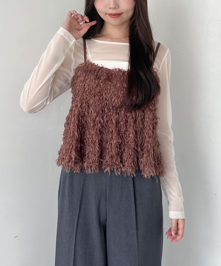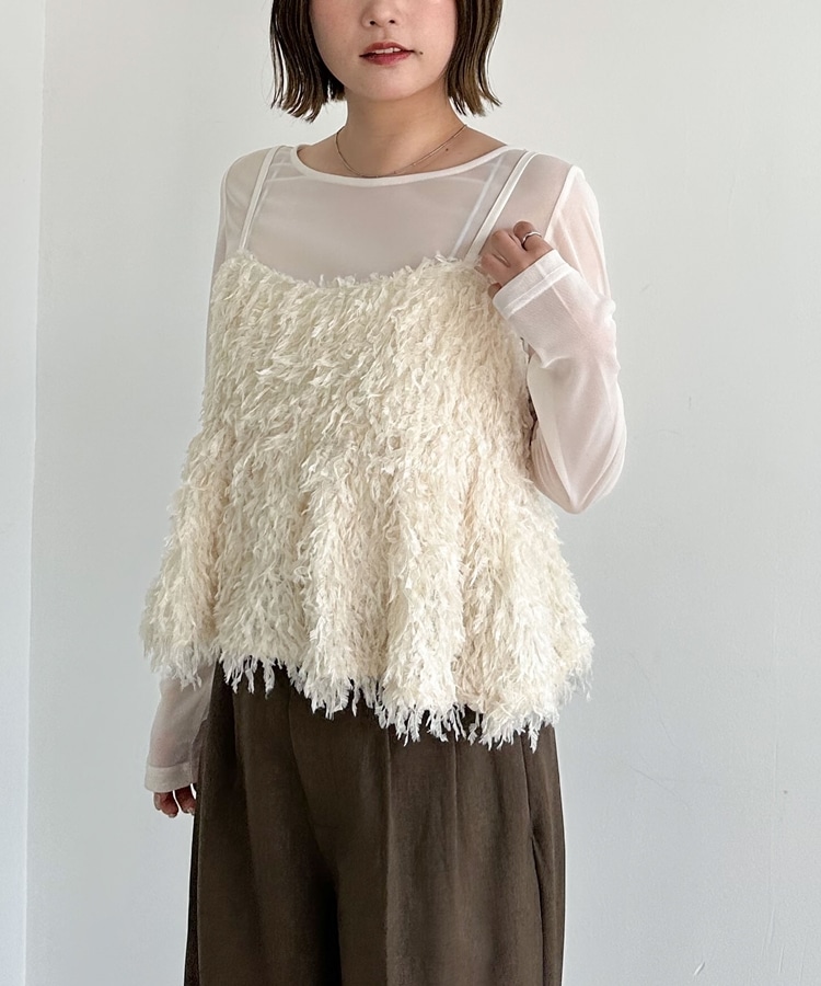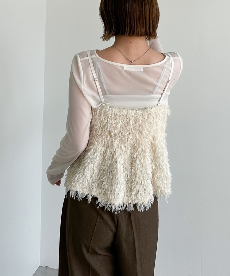 ■カジュアル派さんにおススメのファービスチェ■動きのあるカットフェザーが目を引きます。カット素材なのでカジュアルに着こなせます。しっかりとボリュームのカットフェザーは生地は柔らかくチクチクしないのが◎ペプラムシルエットはスタイルアップに。裾のふんわりとしたシルエットは腰回りをカバーしてくれます。着丈は肩ひものアジャスターで調節可能。シアーインナーは使いやすいクルーネック。ファーとのバランスが◎単品でも使えるのでお持ちのアイテムと合わせるのもおすすめです。ーーーーーーーーーーーーーーー透け感:インナーあり裏地:なし伸縮性:あり光沢感:なし生地厚さ:普通洗濯方法:洗濯可※詳しいお手入れ方法は商品についているタグをご覧くださいーーーーーーーーーーーーーーー※ご利用のモニター環境により、実際の色味と多少異なる場合がございます。