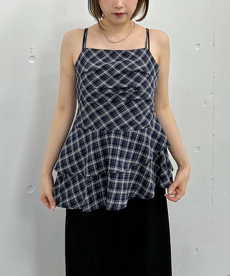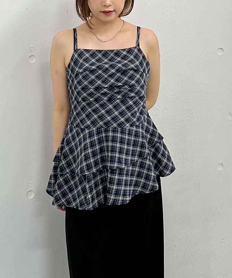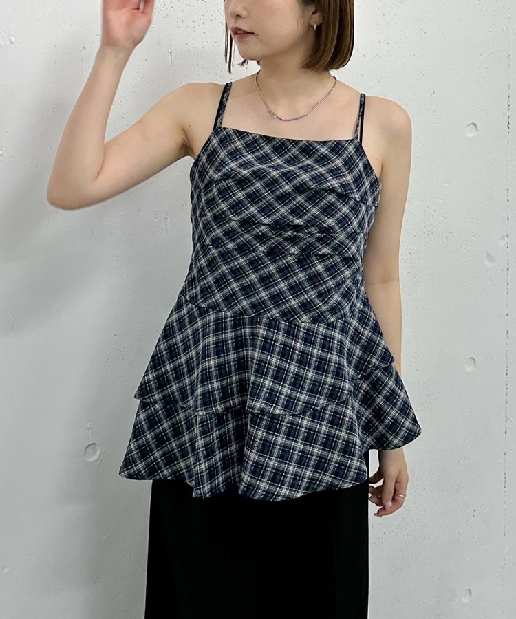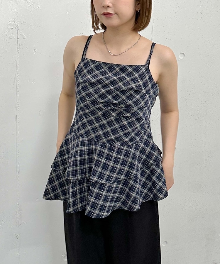 チェックアシメチュニック NAVY