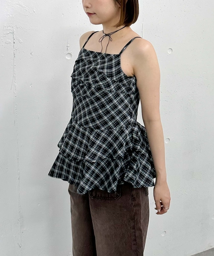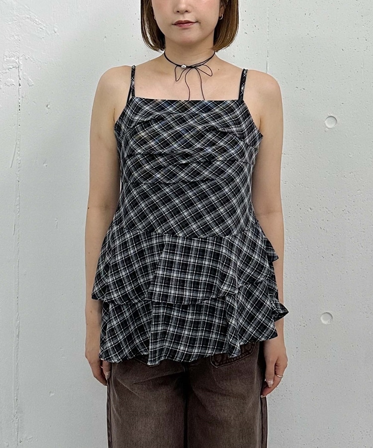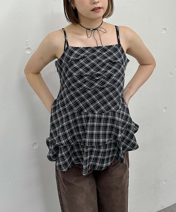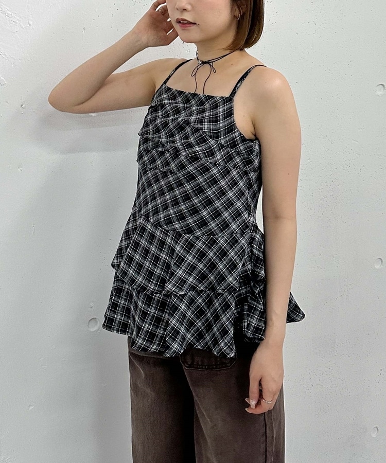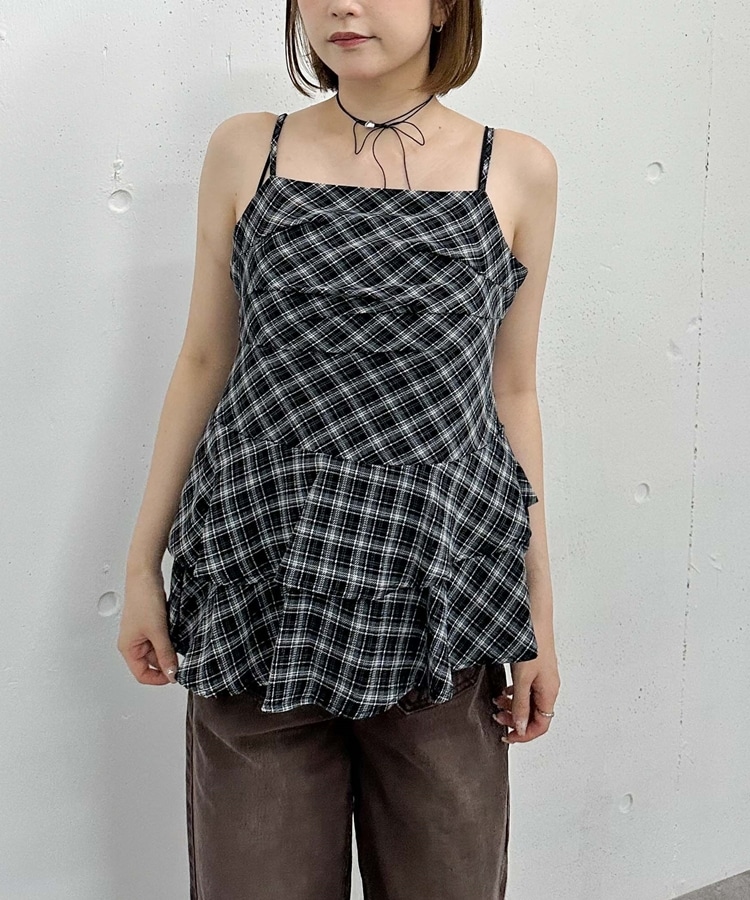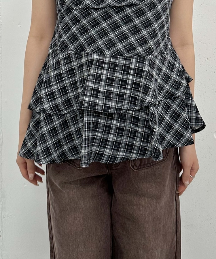 チェックアシメチュニック BLACK